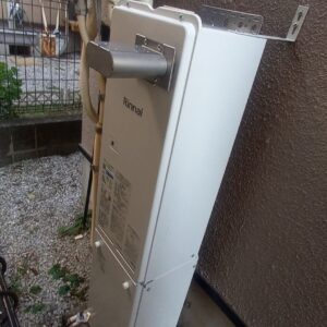 エコジョーズ給湯器の構造上、ドレン水が発生します。給湯器内の中和器(炭酸カルシウム)を通って中和され、排水されます。