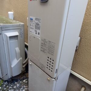 エコジョーズ給湯器の構造上、ドレン水が発生します。給湯器内の中和器(炭酸カルシウム)を通って中和され、排水されます。