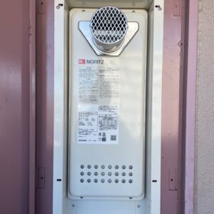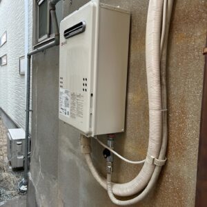 エコジョーズ給湯器の構造上、ドレン水が発生します。給湯器内の中和器(炭酸カルシウム)を通って中和され、排水されます。