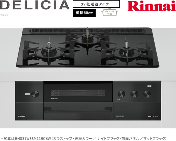 リンナイ デリシア 3V乾電池 ガスコンロ RHS31W38M11RCBWの特長