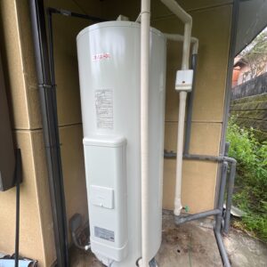 ヒーター内蔵の貯湯タンクで、お湯のわき上げから貯湯までおこなうシンプルな給湯設備です。