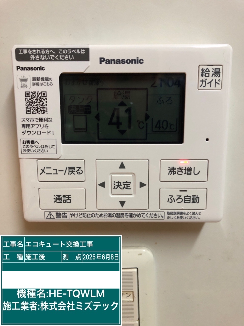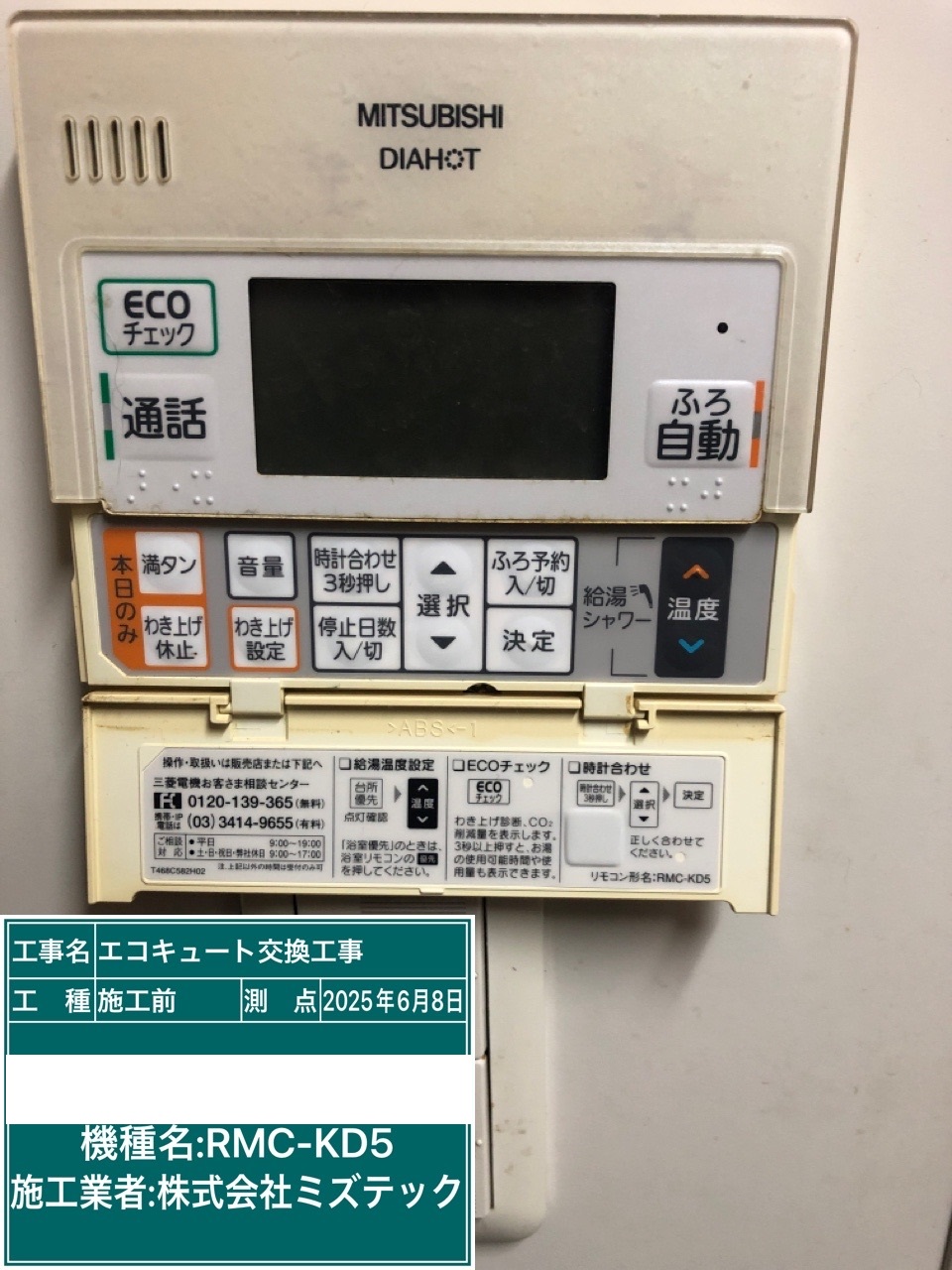 内容 | エコキュート>三菱交換工事 | ||