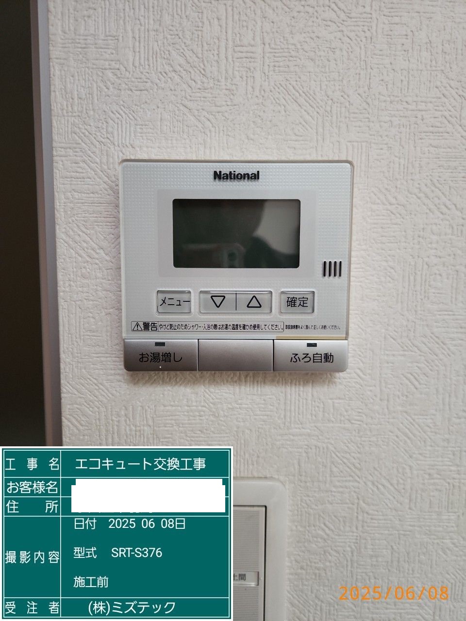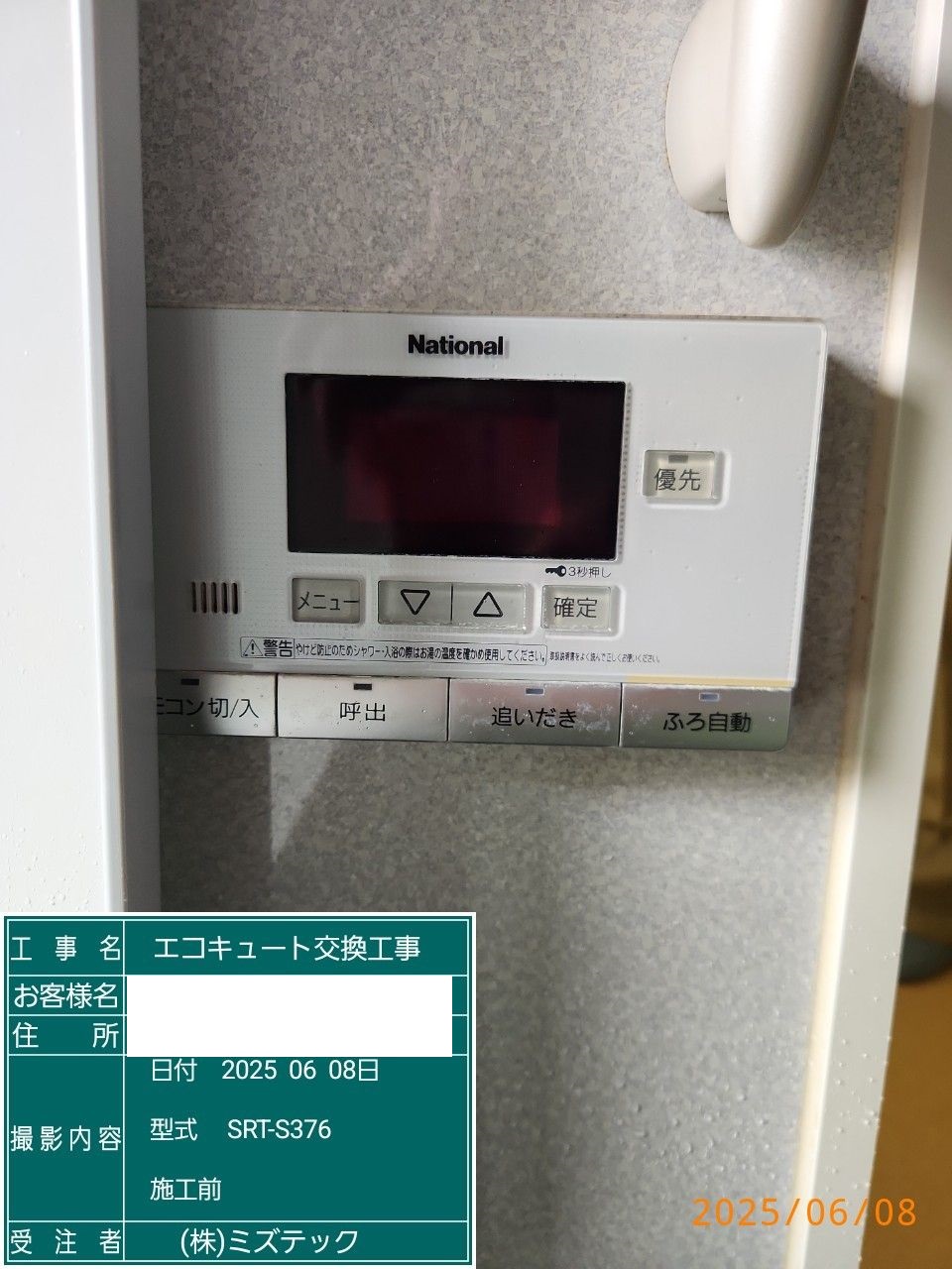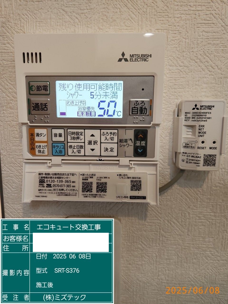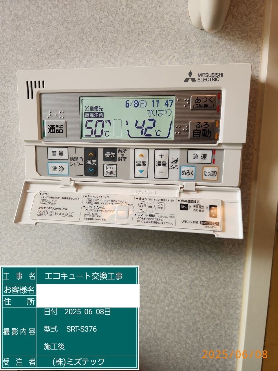 茨城県小美玉市エコキュート>三菱交換工事施工事例:パナソニックHE-37K3Qから三菱SRT-S376への交換