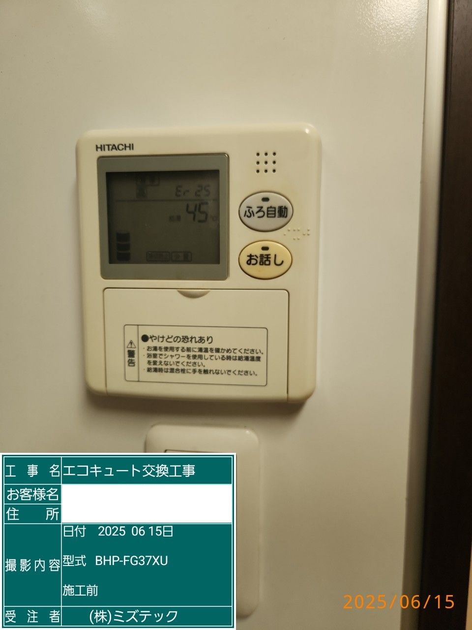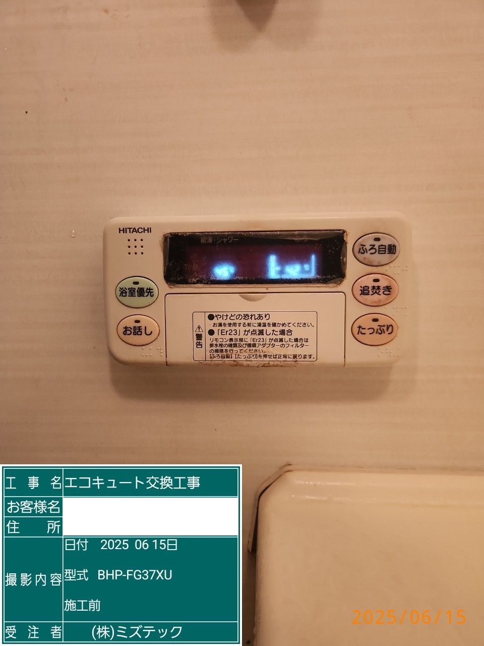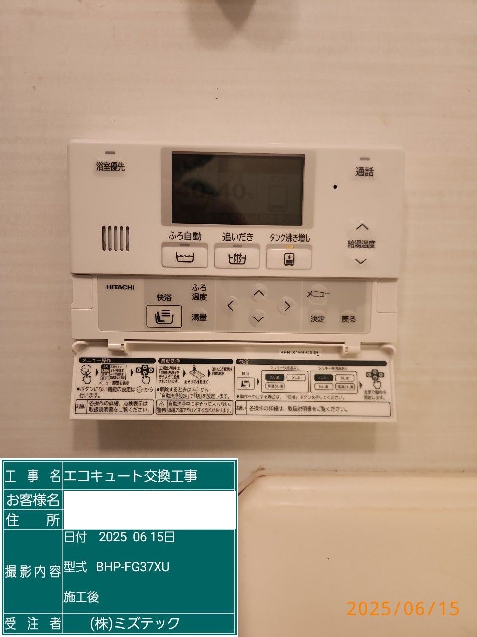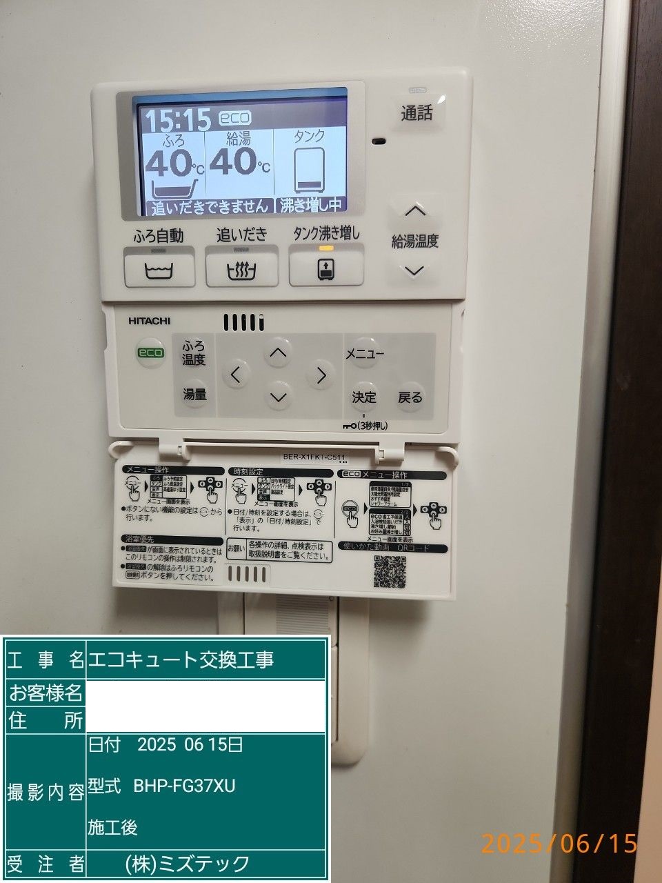 茨城県ひたちなか市エコキュート>日立交換工事施工事例:日立BHP-TD373から日立BHP-FG37XUへの交換