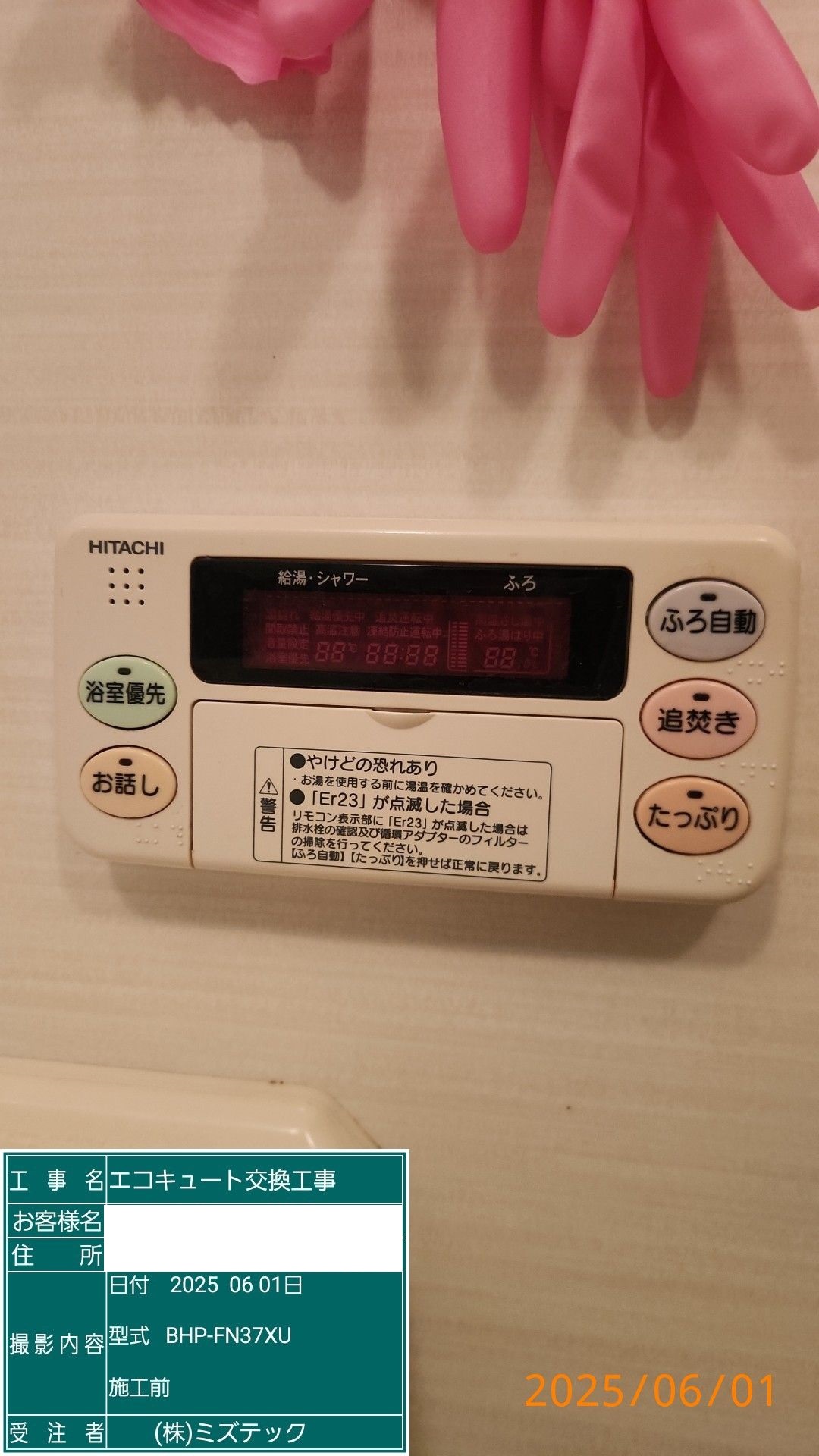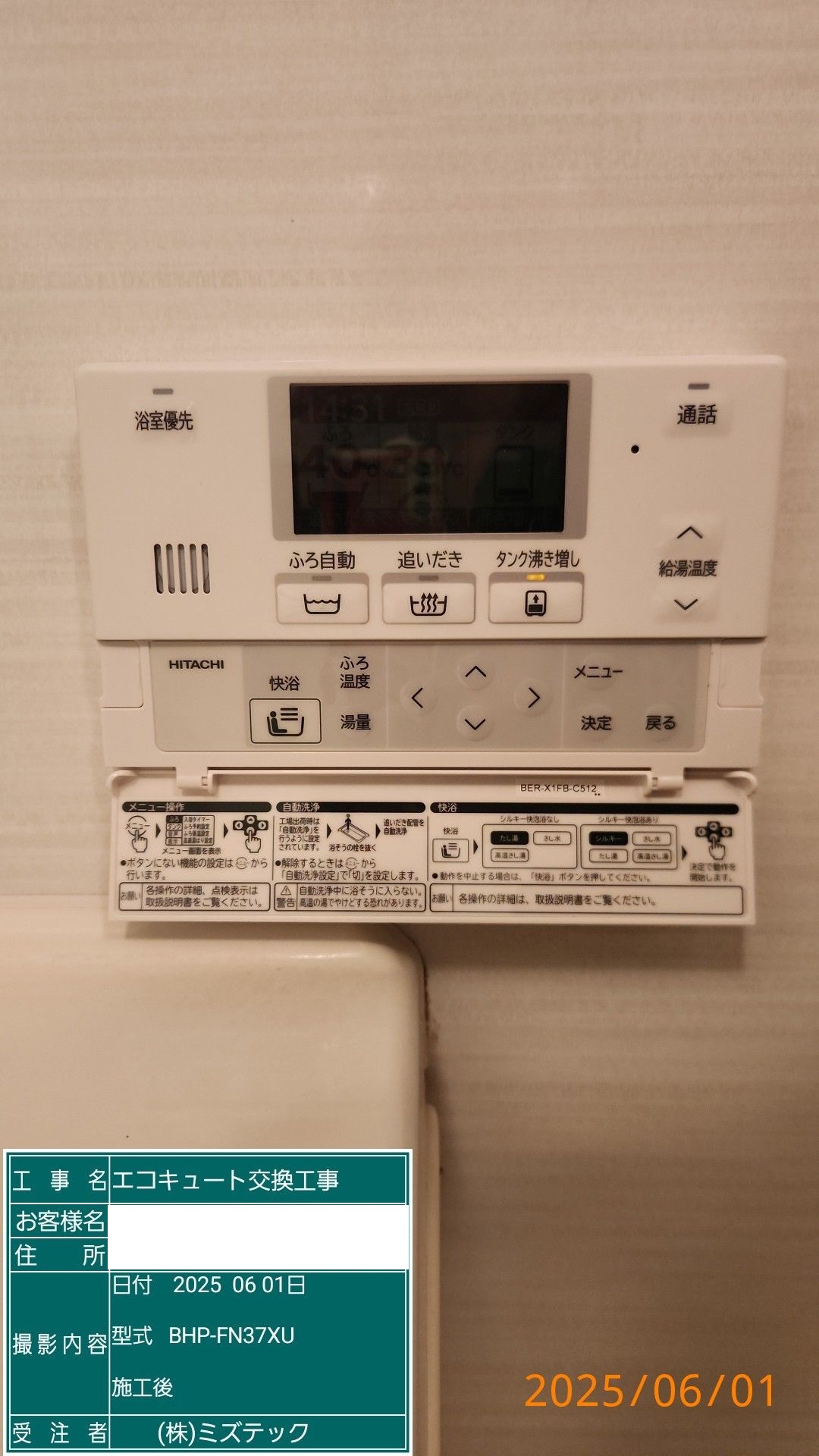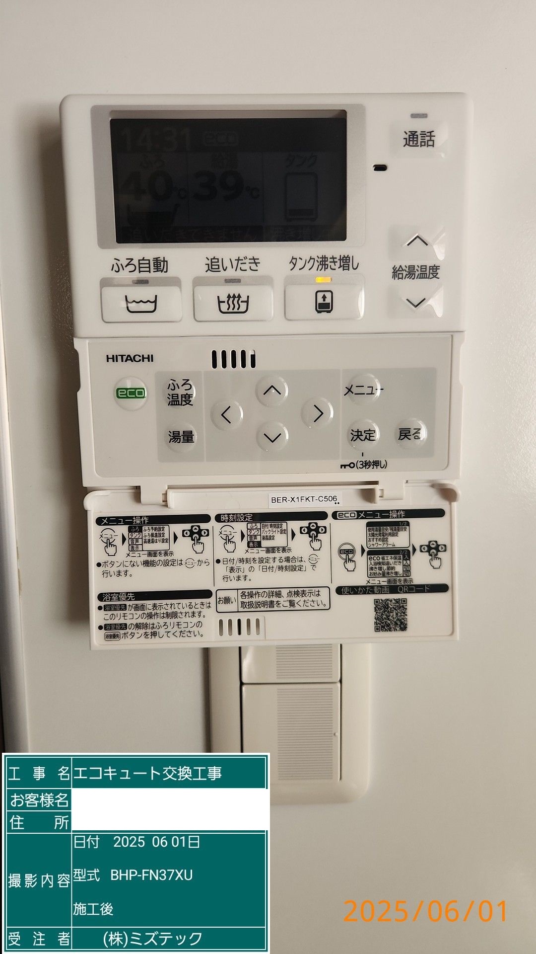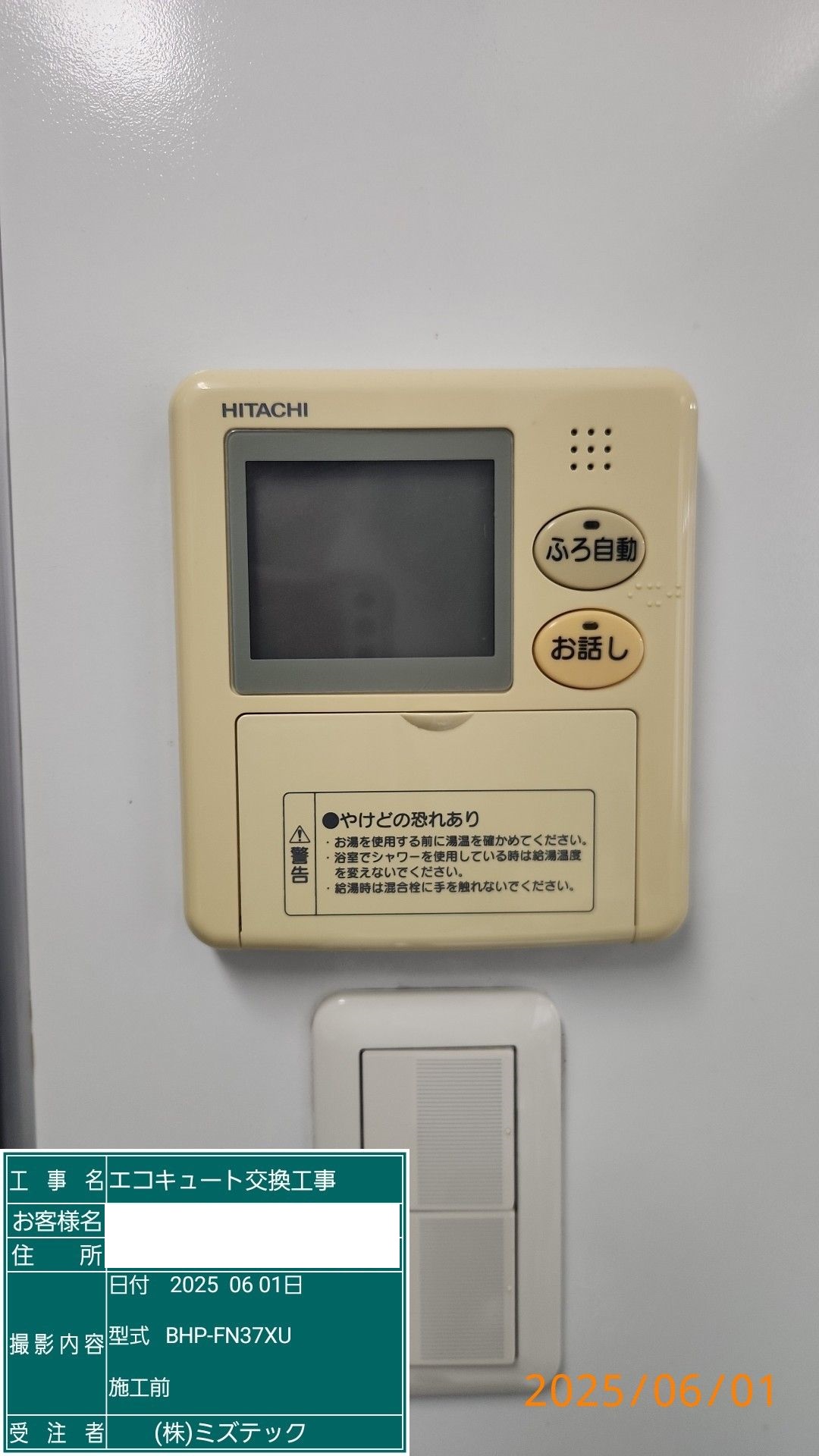 茨城県ひたちなか市エコキュート>日立交換工事施工事例:日立BHP-FN37XUから日立BHP-FN37XUへの交換