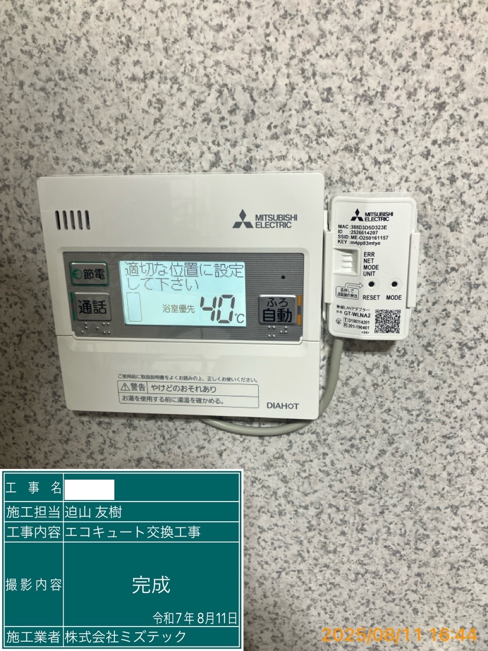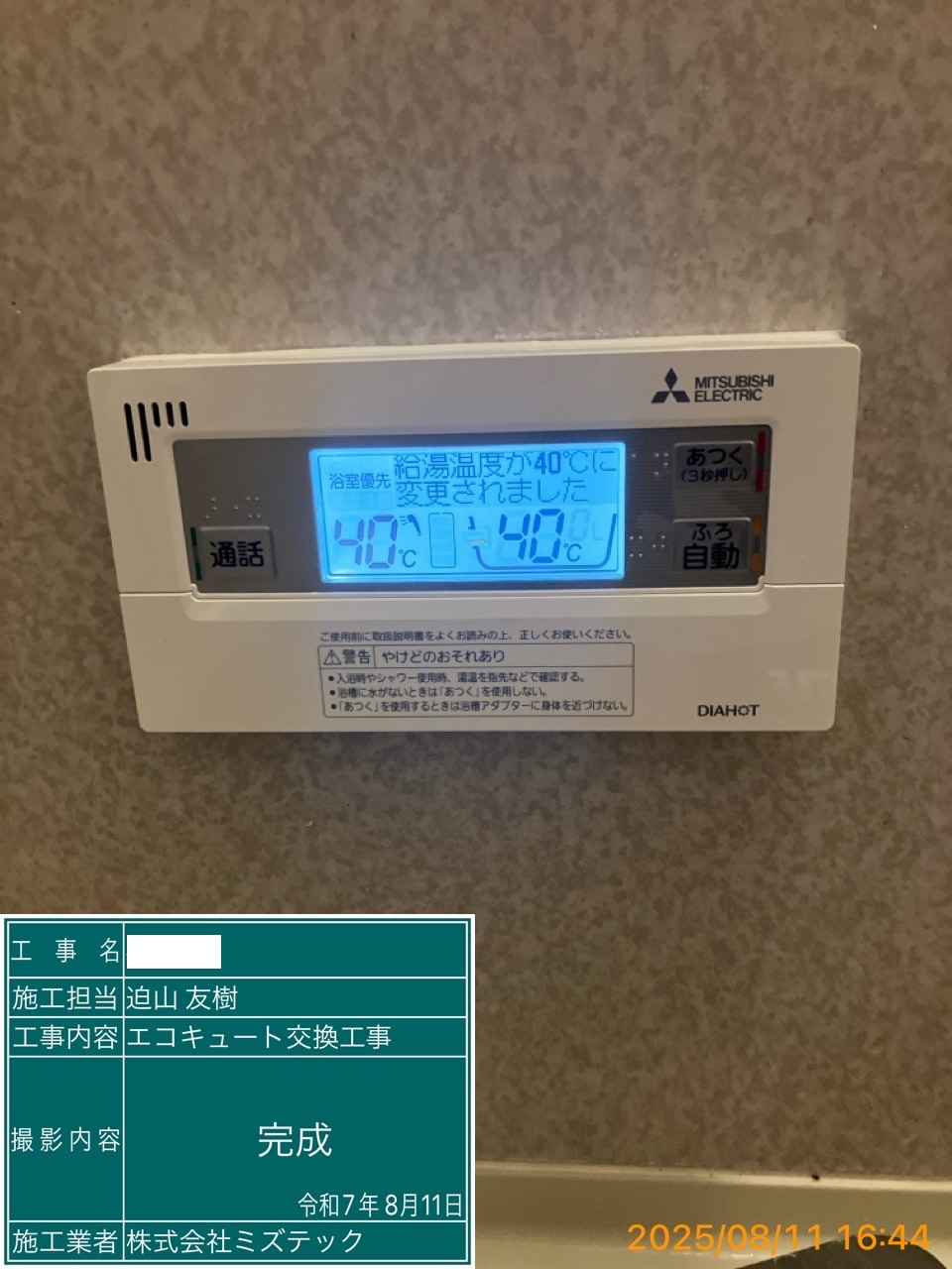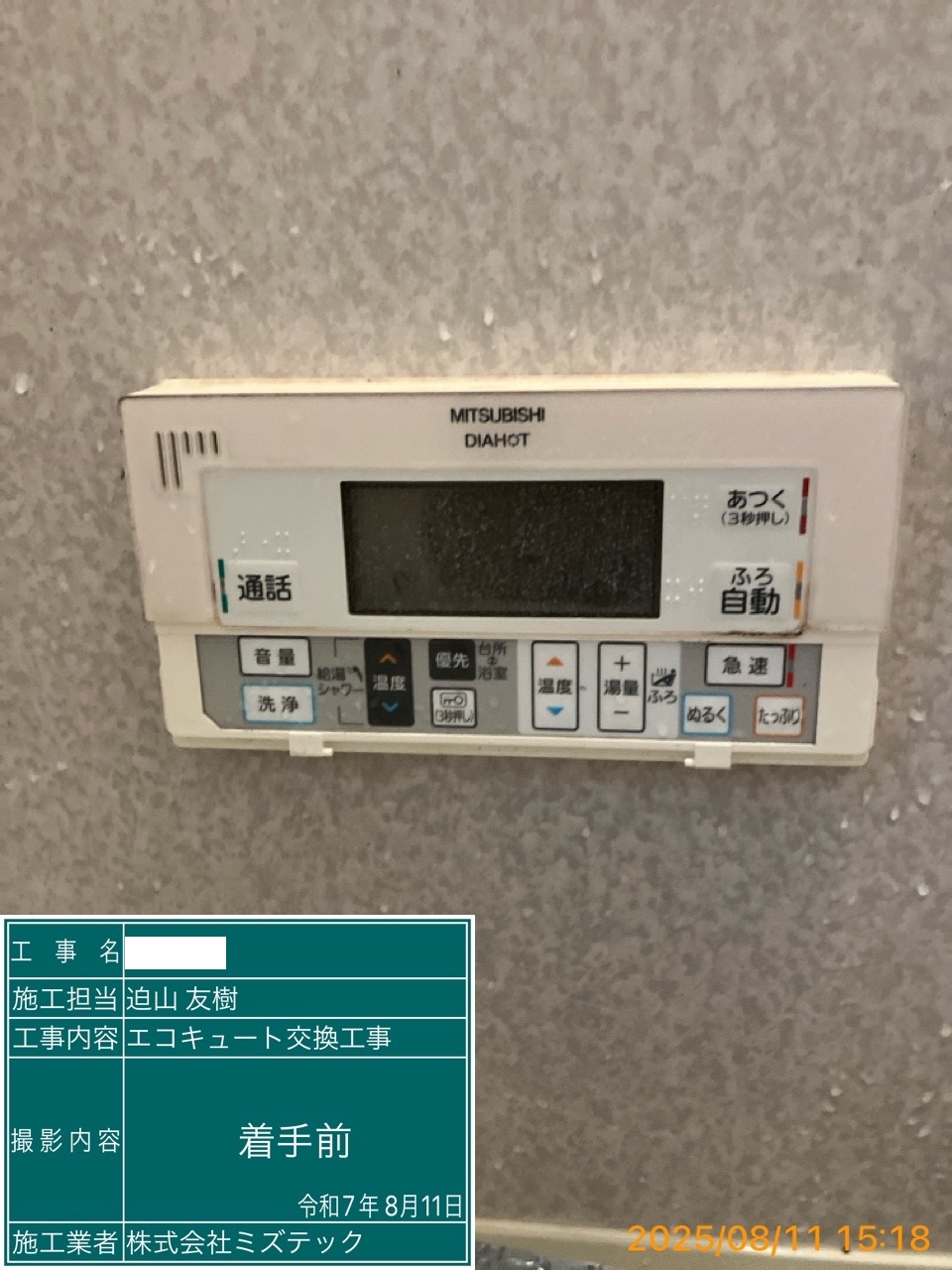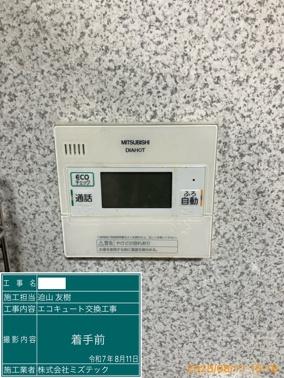 | 内容 | エコキュート>三菱交換工事 | ||
