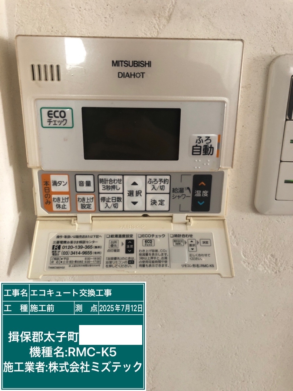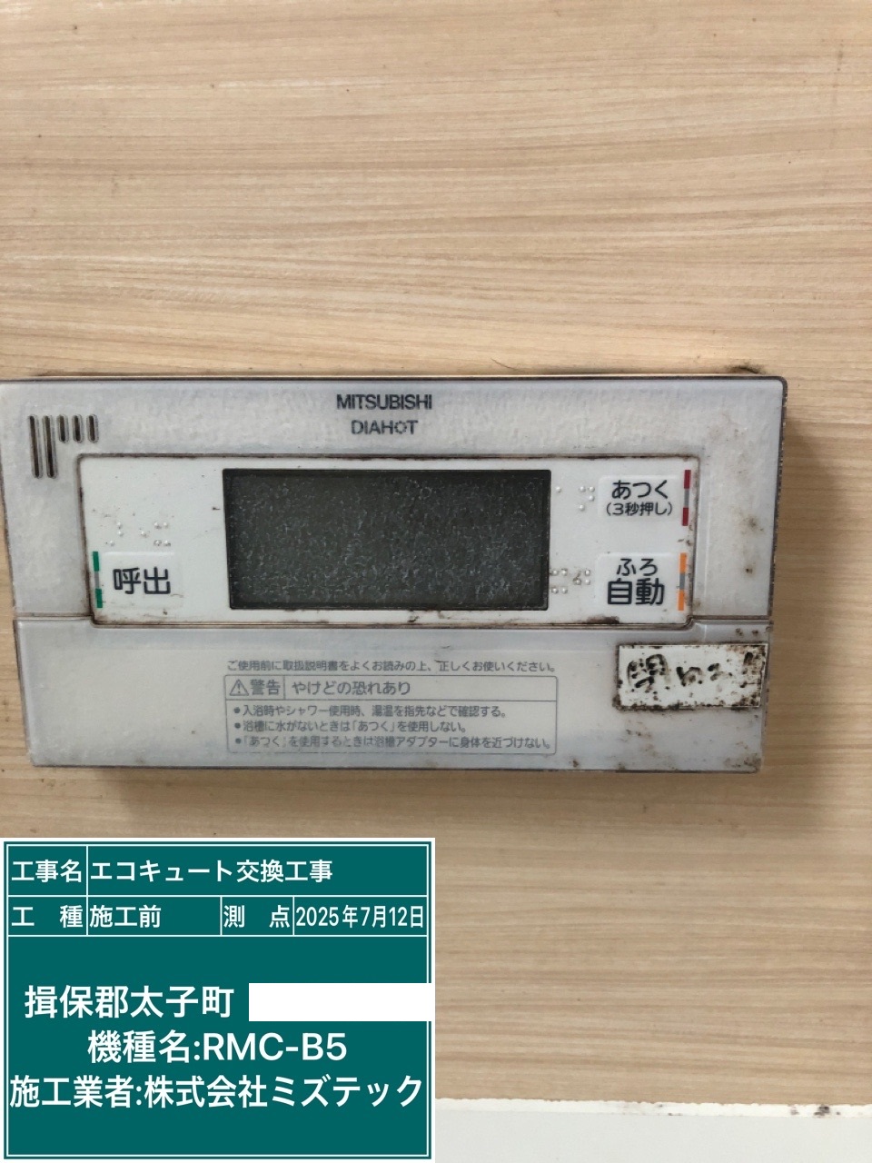 兵庫県揖保郡太子町エコキュート>三菱交換工事施工事例:ミツビシSRT-HPT37W5から三菱SRT-S377への交換
