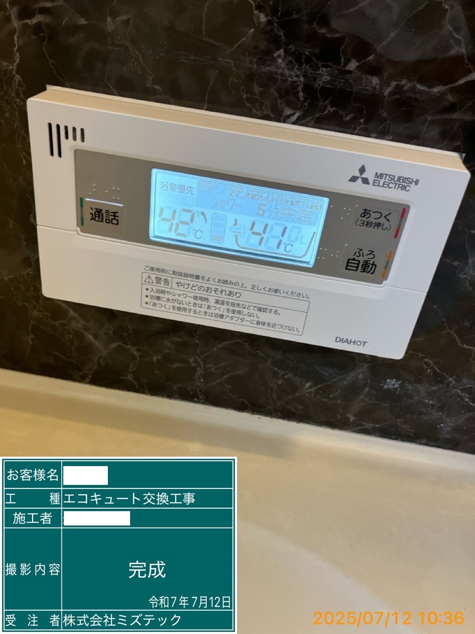 大阪府高槻市大手町エコキュート>三菱交換工事施工事例:コロナCTU-461D1A11から三菱SRT-S377への交換