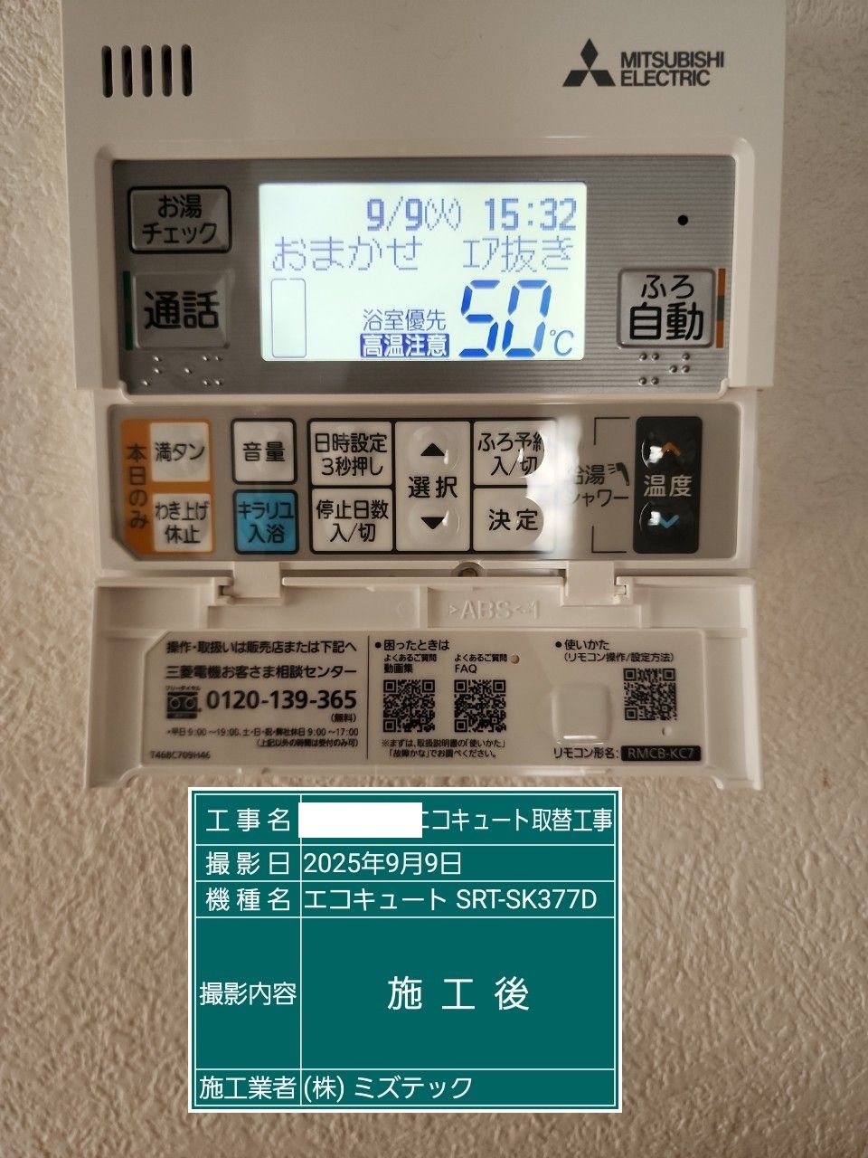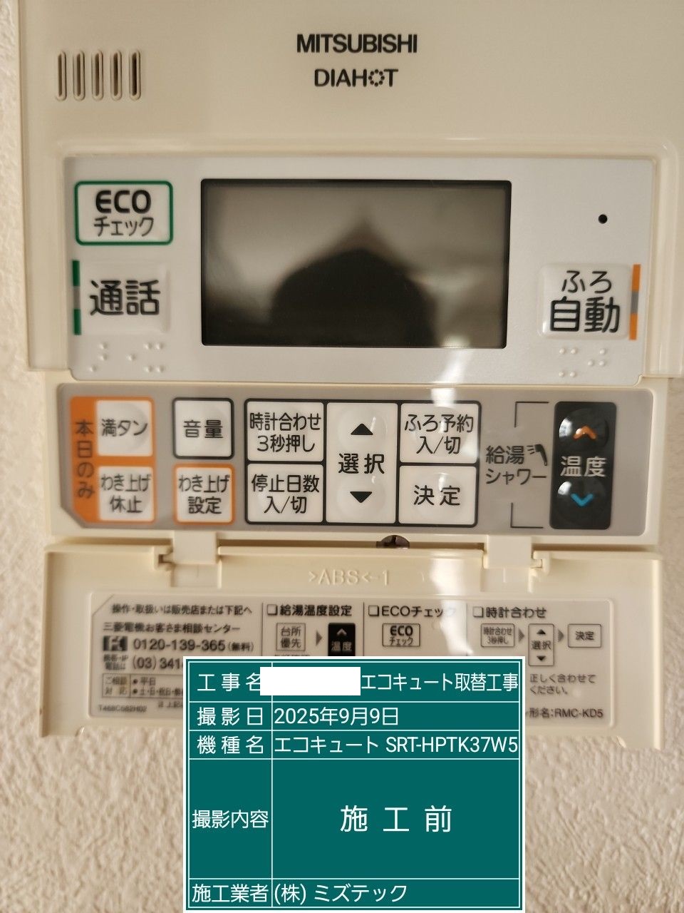 長野県松本市エコキュート>三菱交換工事施工事例:三菱SRT-HPTK37W5から三菱SRT-SK377Dへの交換