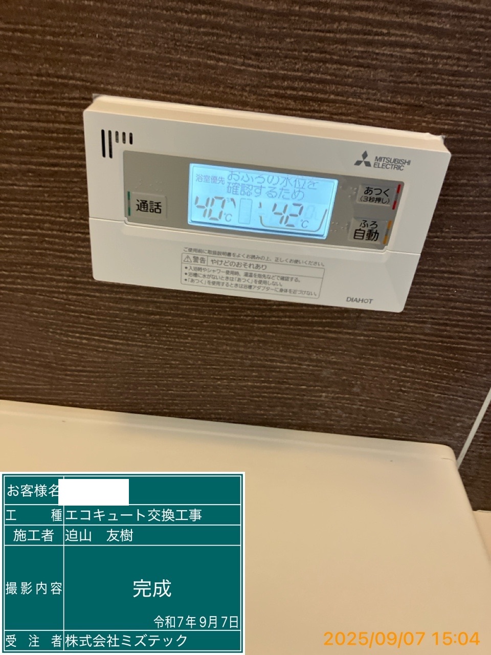 大阪府茨木市山手台東町エコキュート>三菱交換工事施工事例:ダイキンTU46KFVから三菱SRT-S467Uへの交換