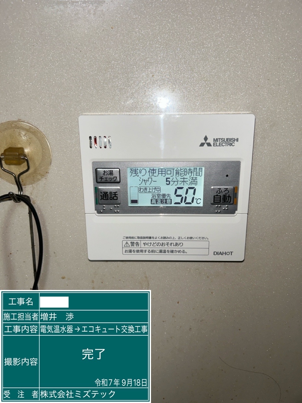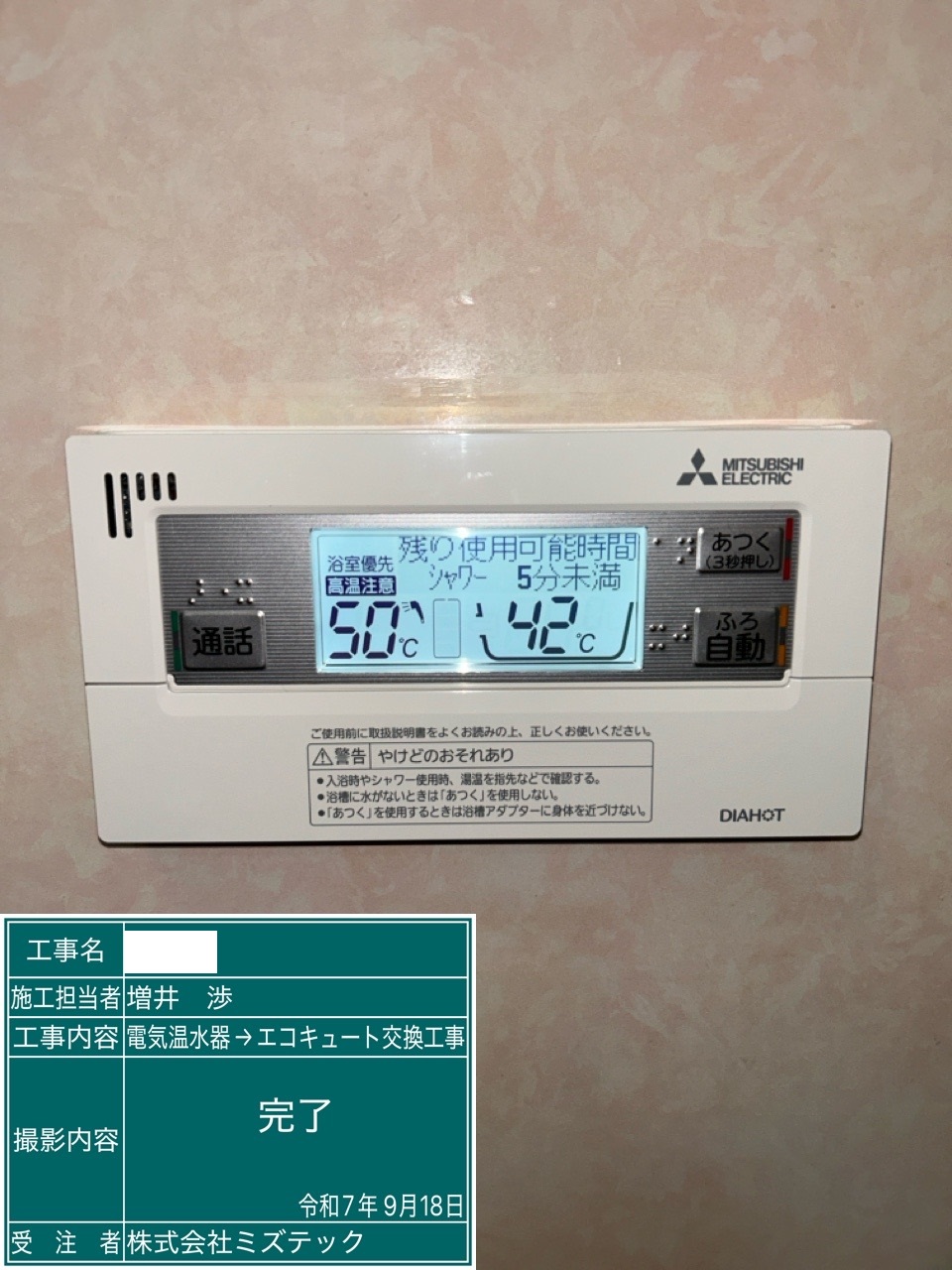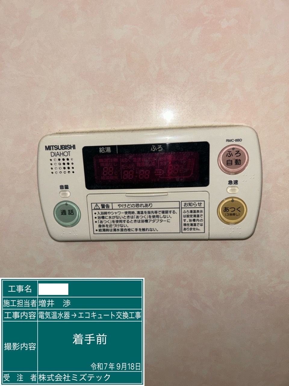大阪府八尾市エコキュート>三菱交換工事施工事例:三菱SRT-46W2から三菱SRT-S377への交換