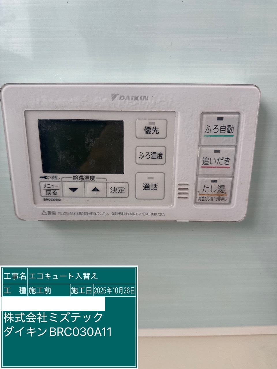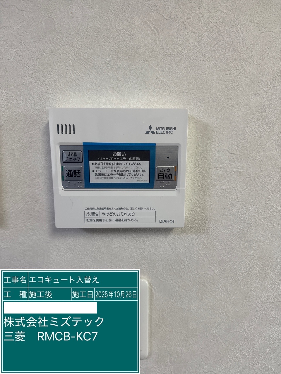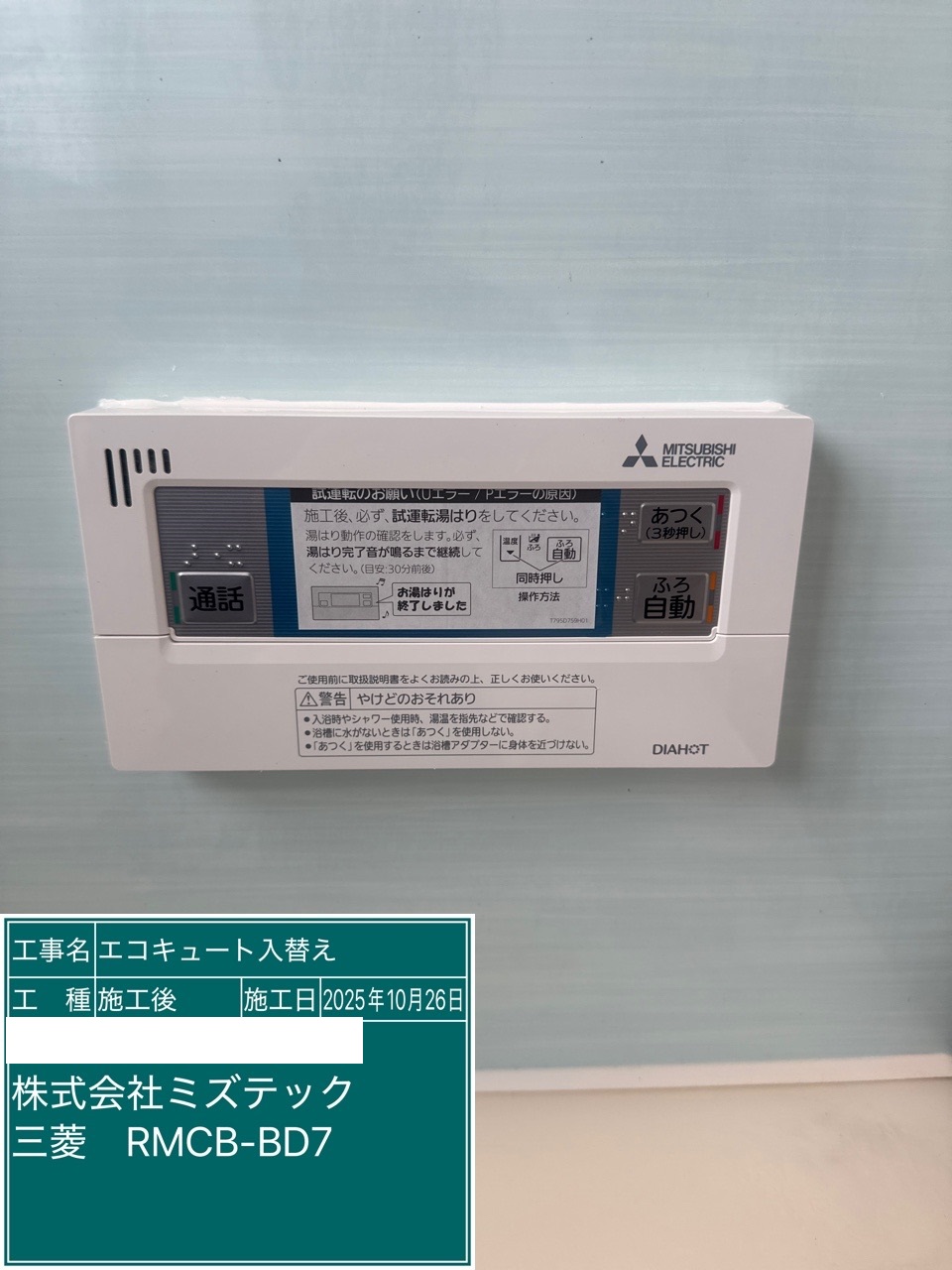 三重県松阪市小野江町エコキュート>三菱交換工事施工事例:ダイキンEQ46NFVから三菱SRT-S377Uへの交換