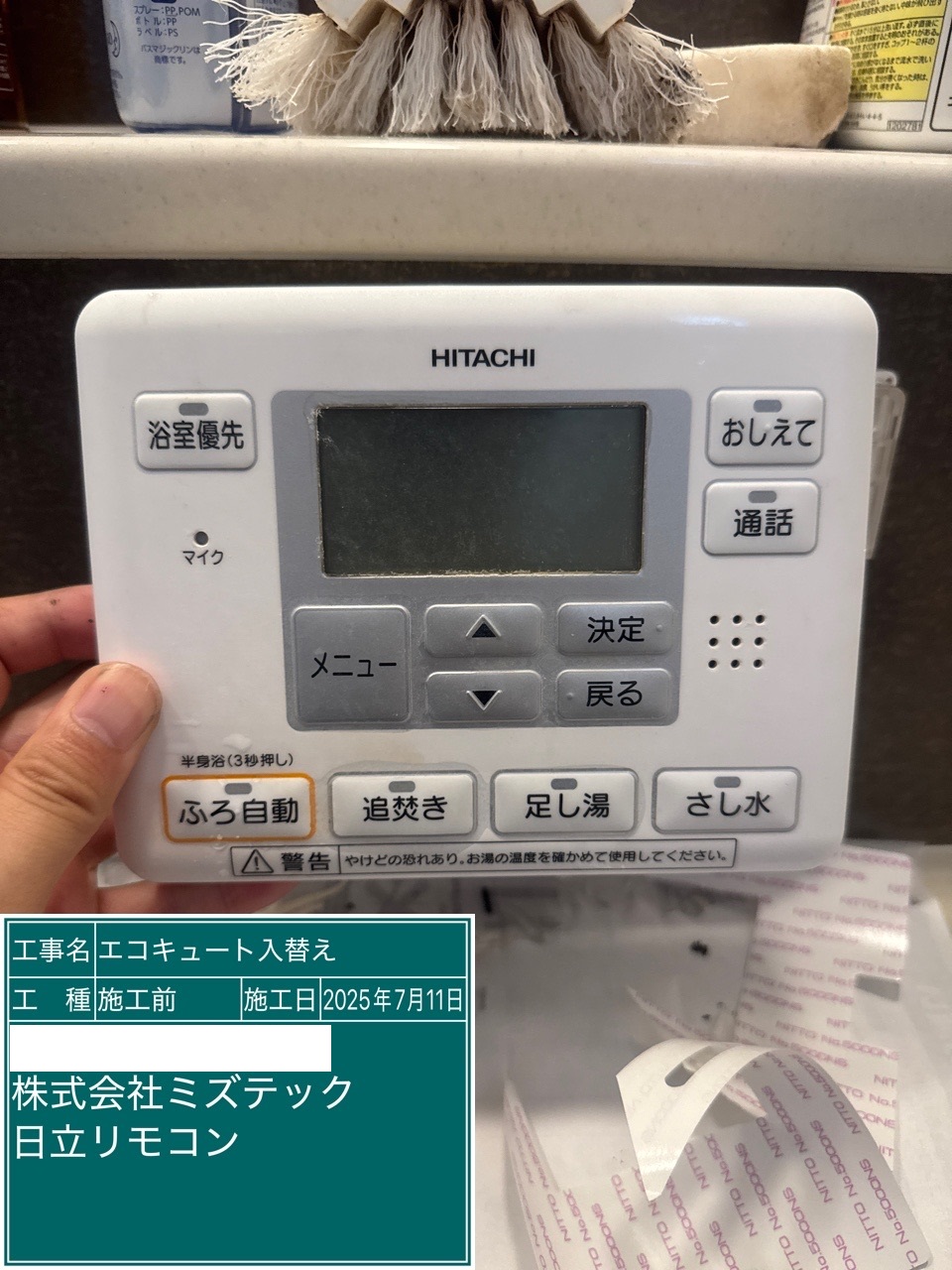 愛知県豊田市エコキュート>ダイキン交換工事施工事例:ヒタチBHP-TAT461LDからダイキンEQN37YFVへの交換