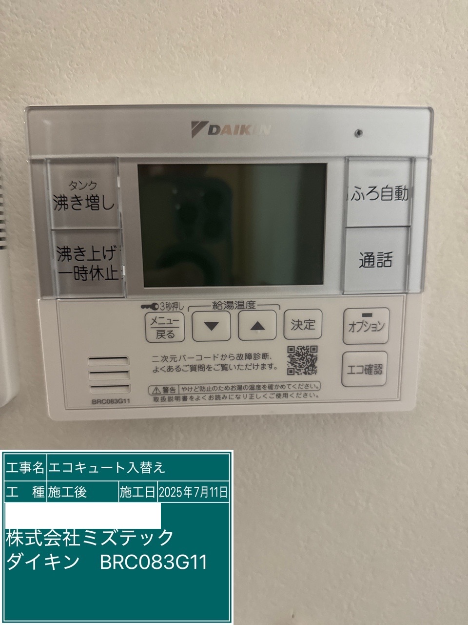 | 内容 | エコキュート>ダイキン交換工事 | ||