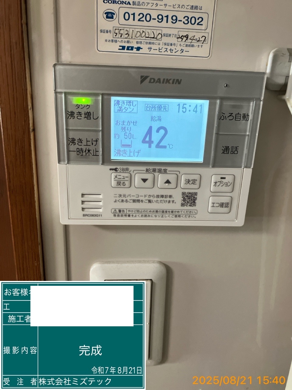 | 内容 | エコキュート>ダイキン交換工事 | ||