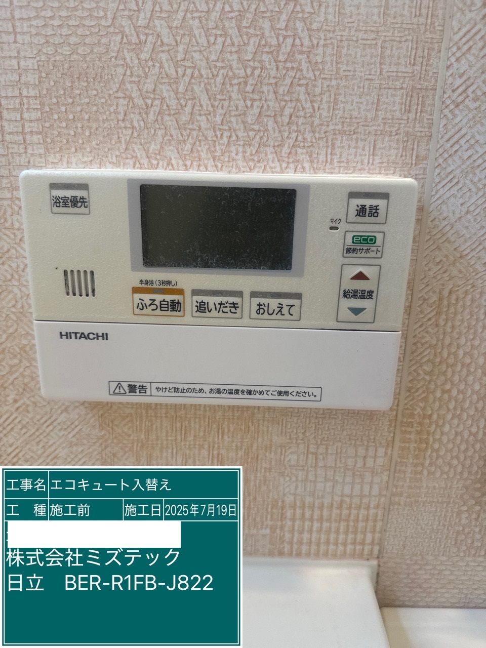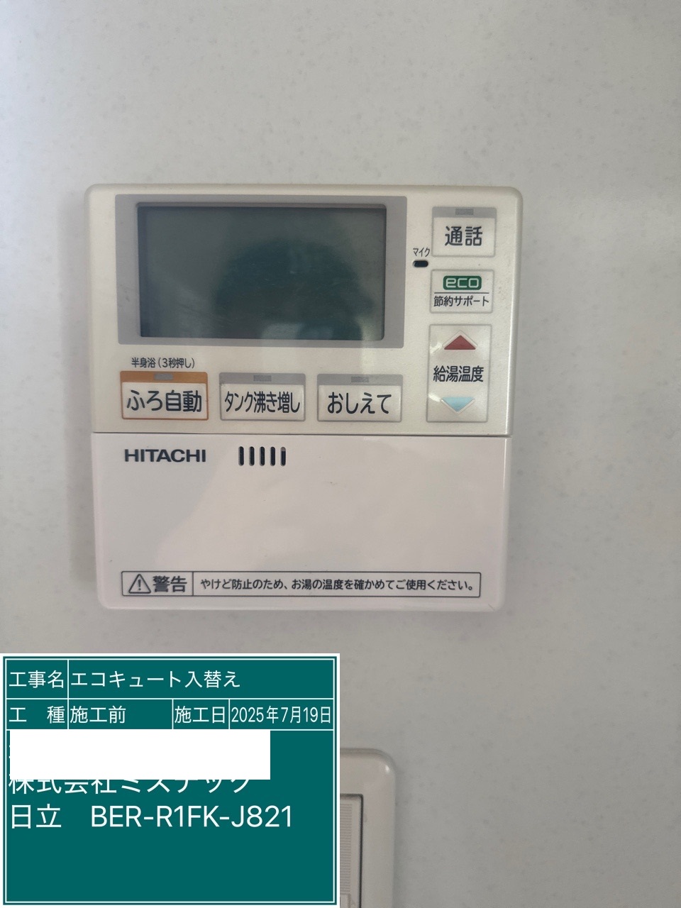 愛知県豊田市和会町エコキュート>ダイキン交換工事施工事例:ヒタチBHP-TA37RからダイキンEQA37YFVへの交換