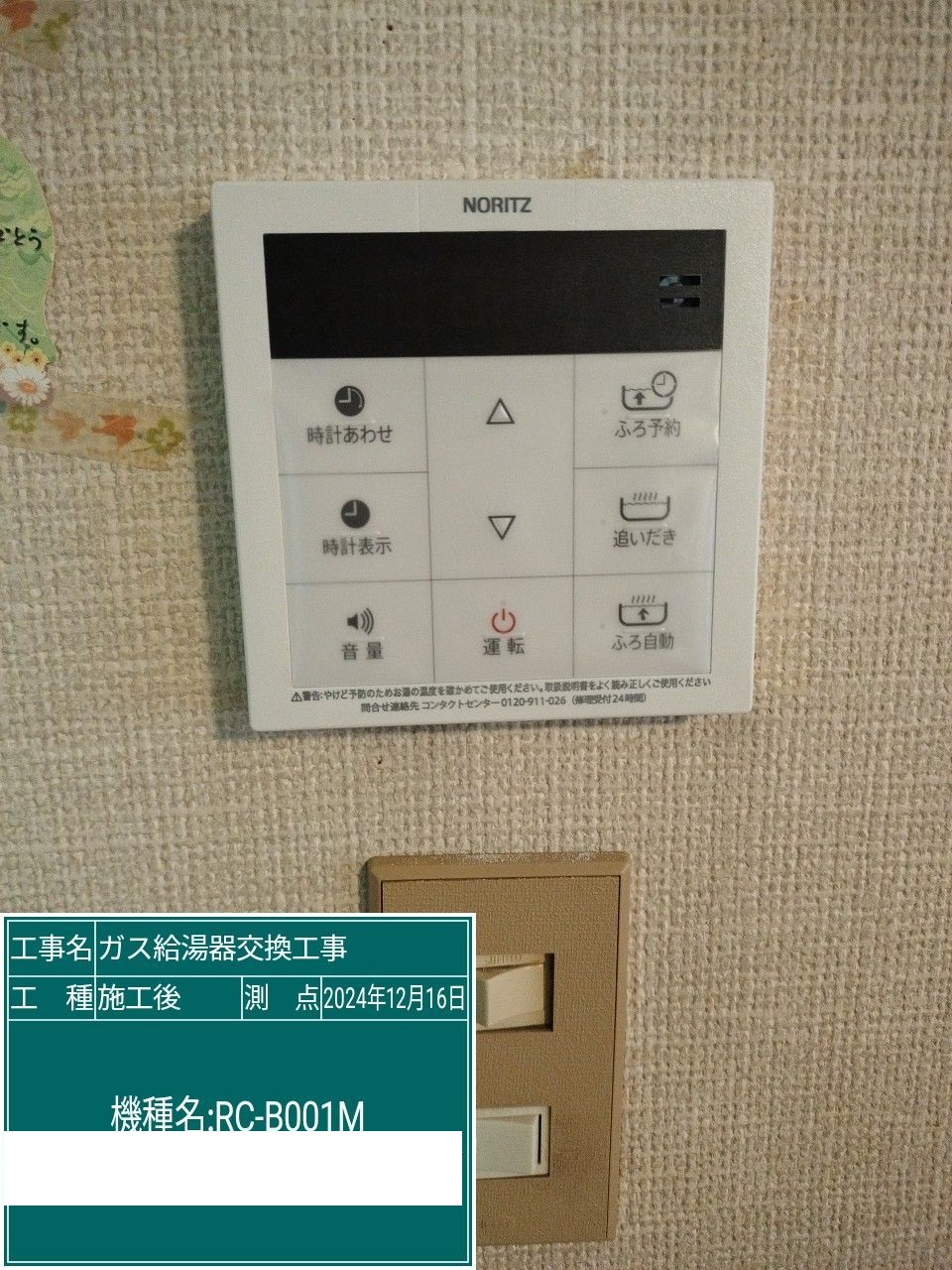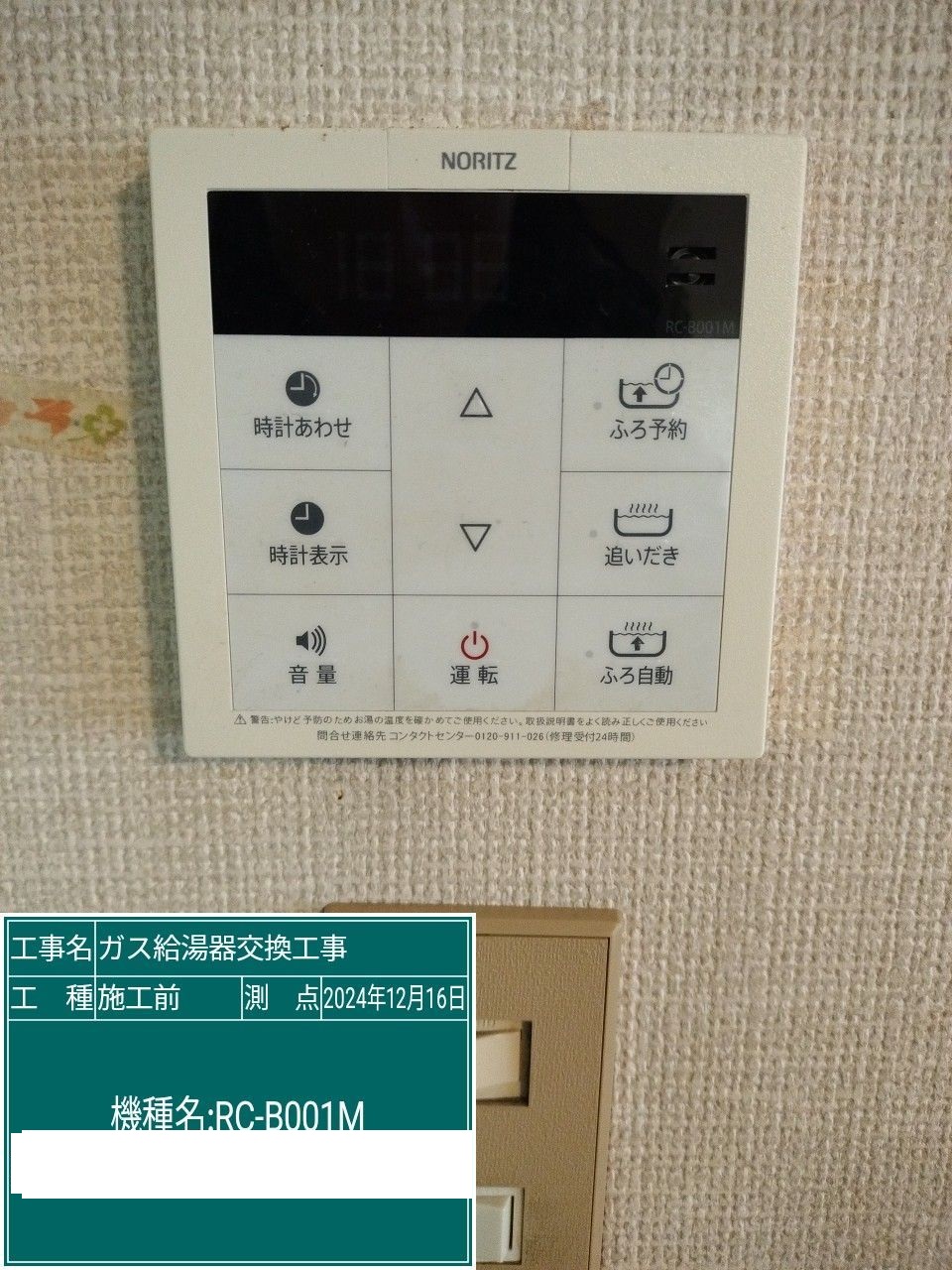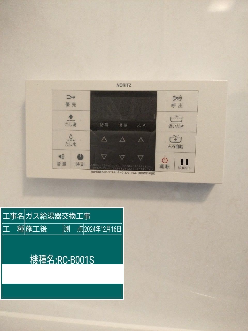 | 内容 | ガス給湯器>ノーリツ交換工事 | ||