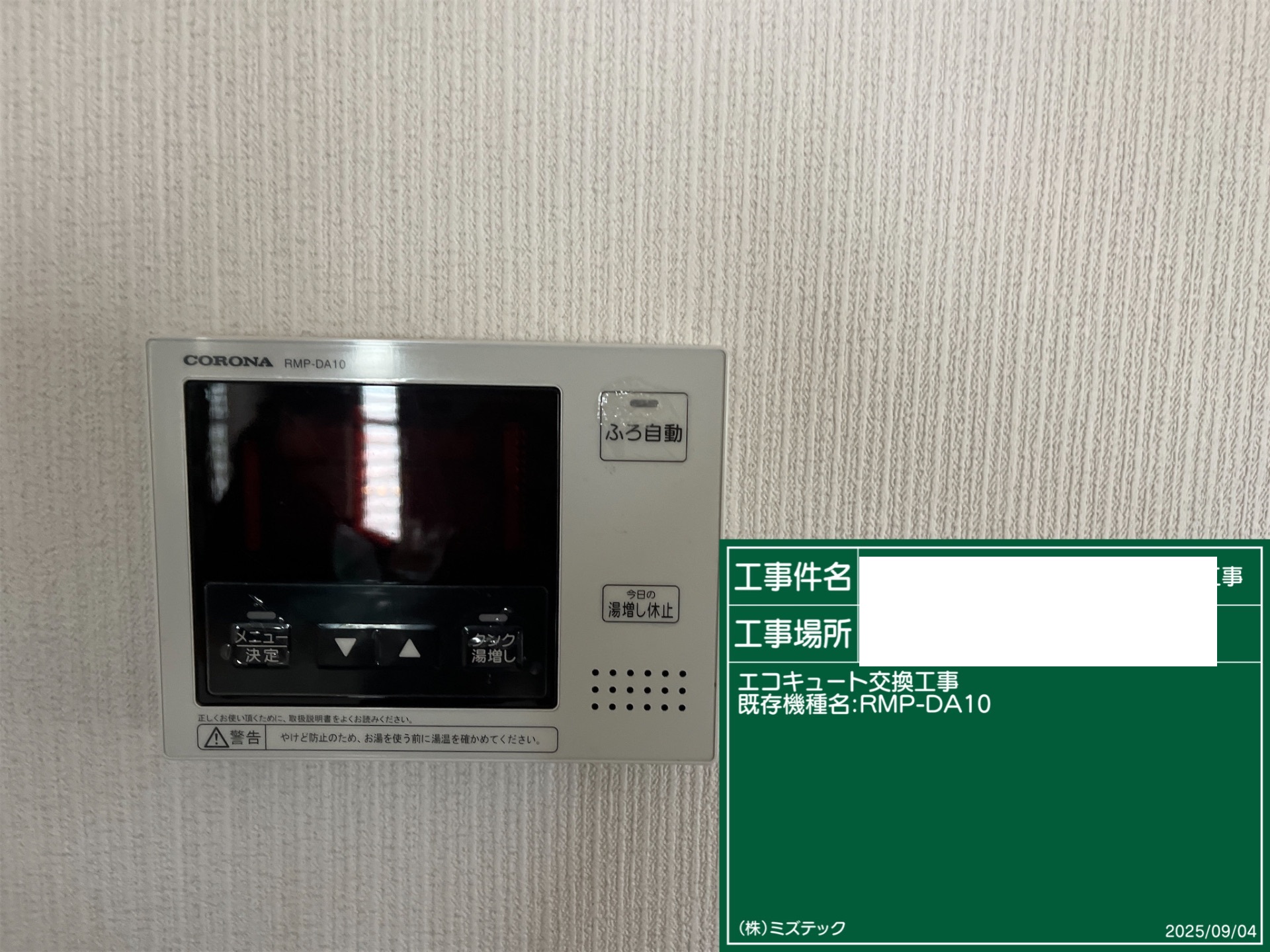 静岡県富士宮市エコキュート>ダイキン交換工事施工事例:コロナCHP-461D1A10からダイキンEQX46ZFVへの交換