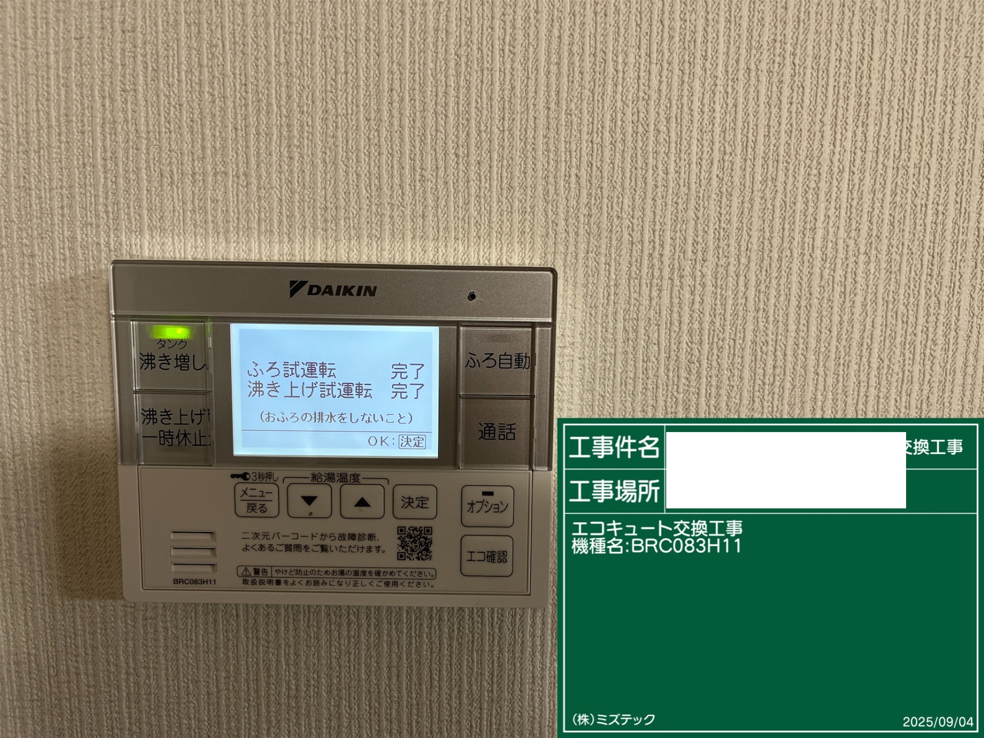 | 内容 | エコキュート>ダイキン交換工事 | ||