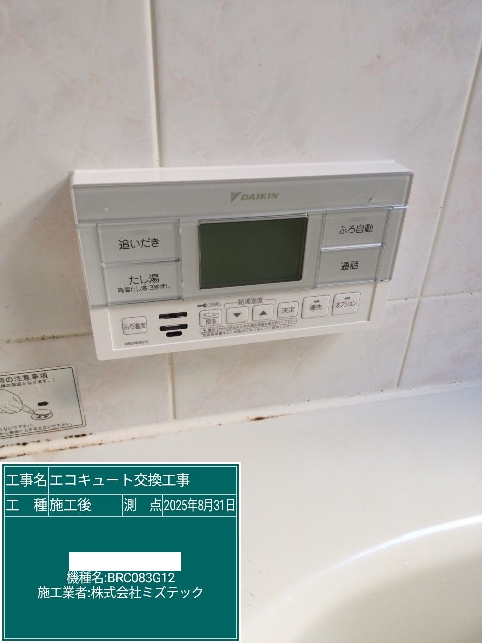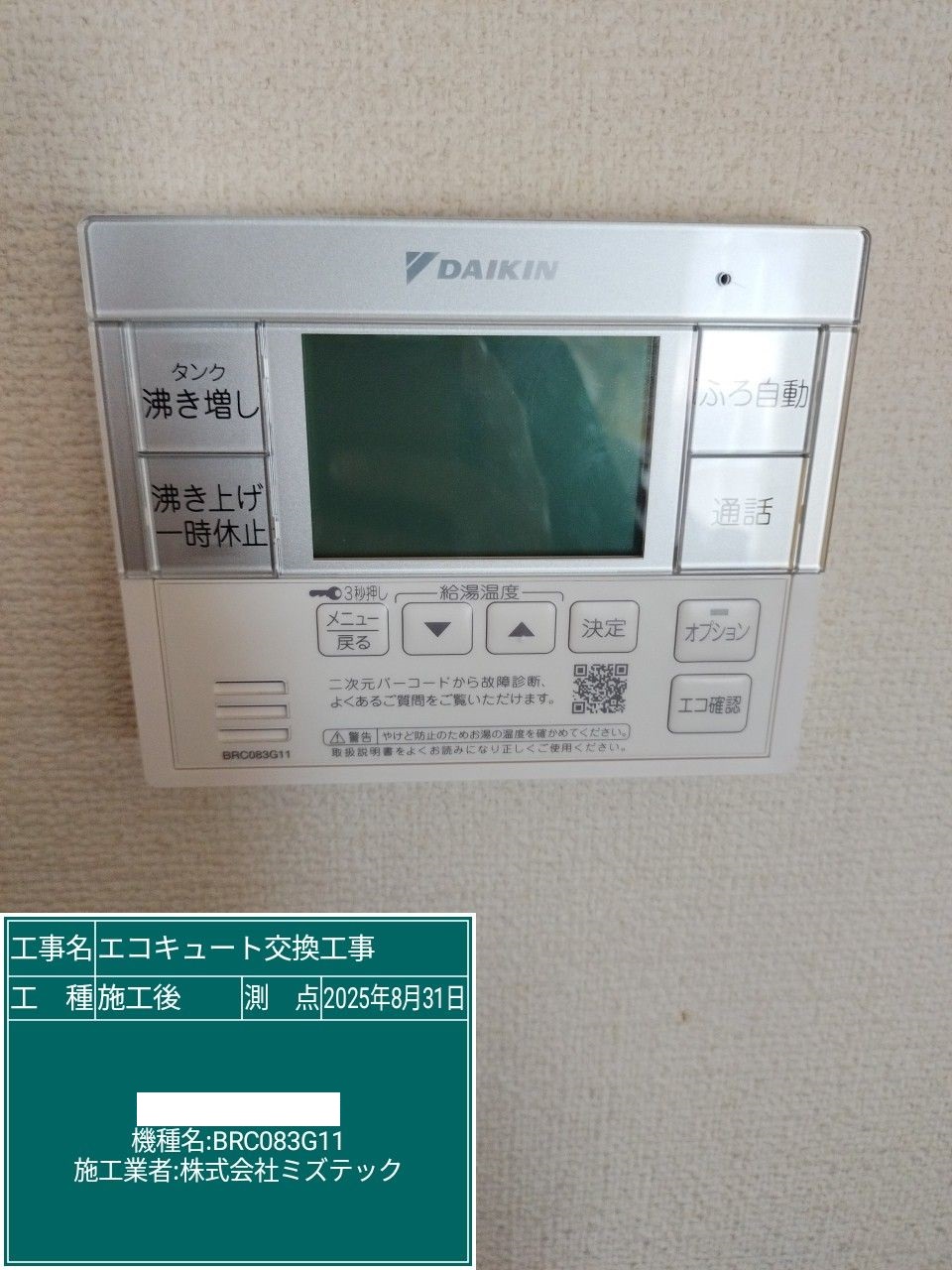 | 内容 | エコキュート>ダイキン交換工事 | ||