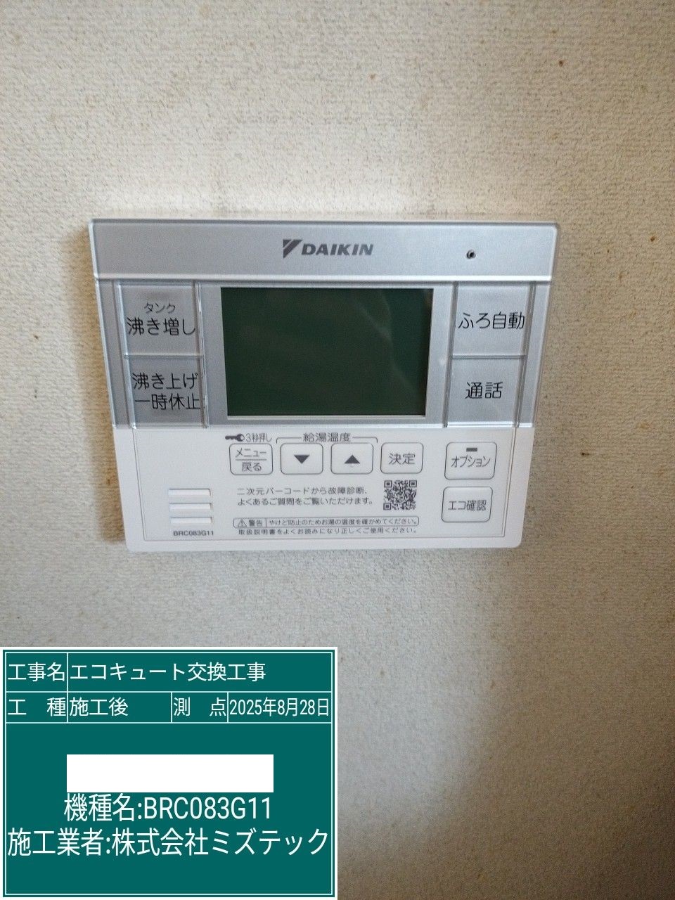 | 内容 | エコキュート>ダイキン交換工事 | ||