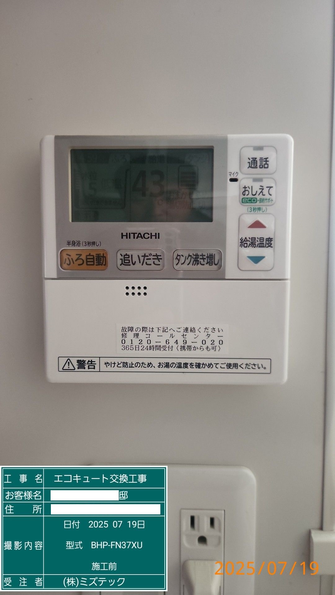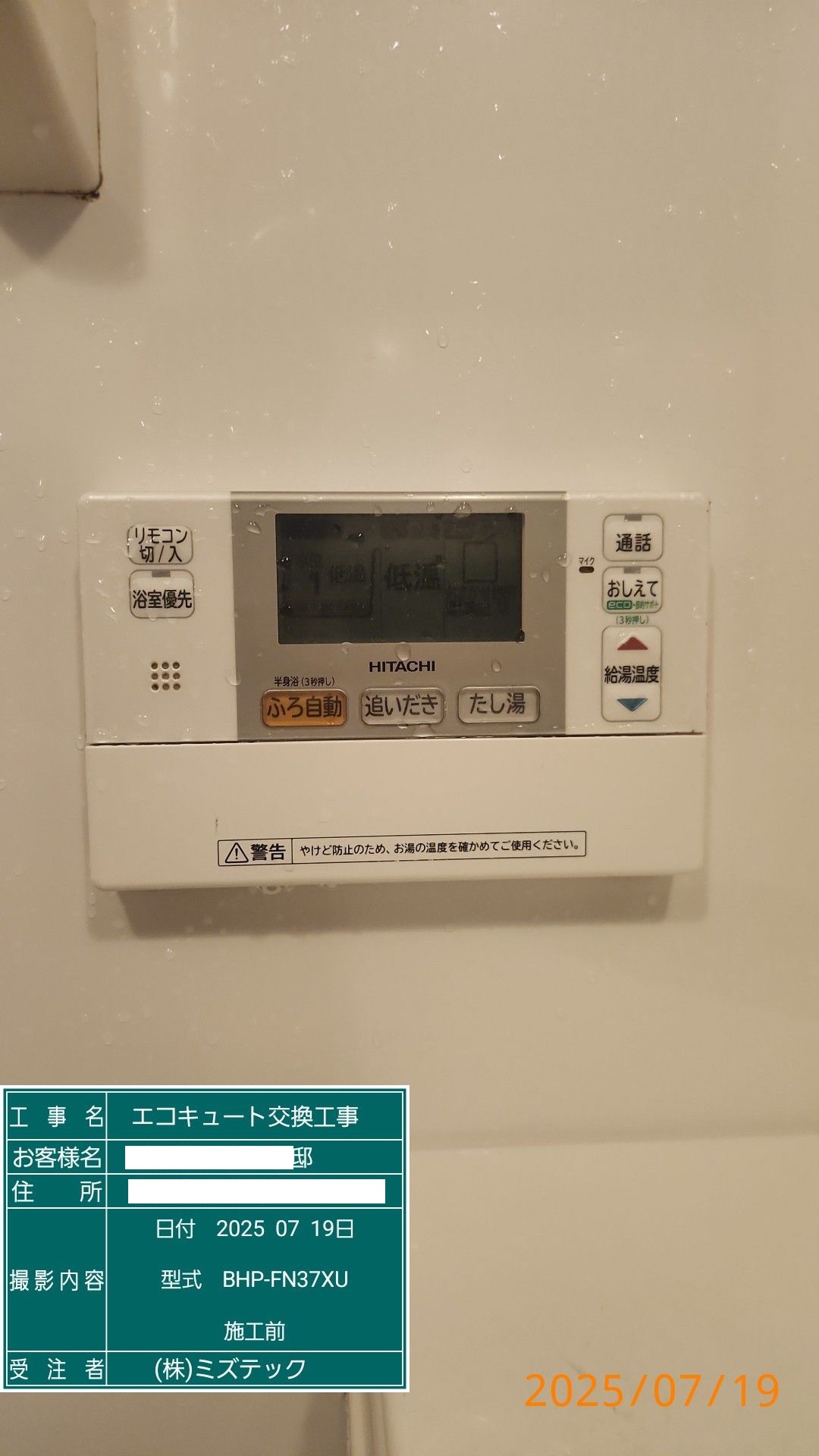 | 内容 | エコキュート>日立交換工事 | ||