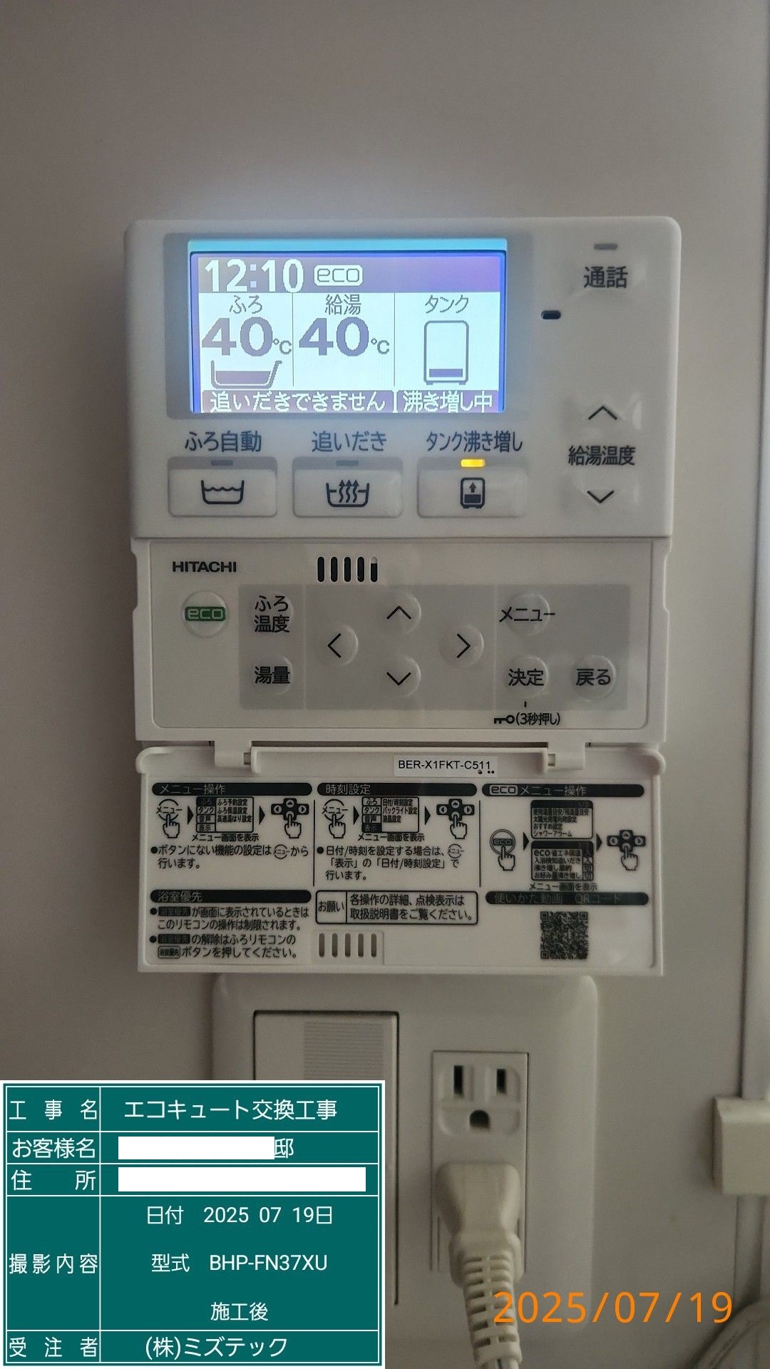 茨城県日立市会瀬町エコキュート>日立交換工事施工事例:ヒタチBHP-TA37LEから日立BHP-FN37XUへの交換