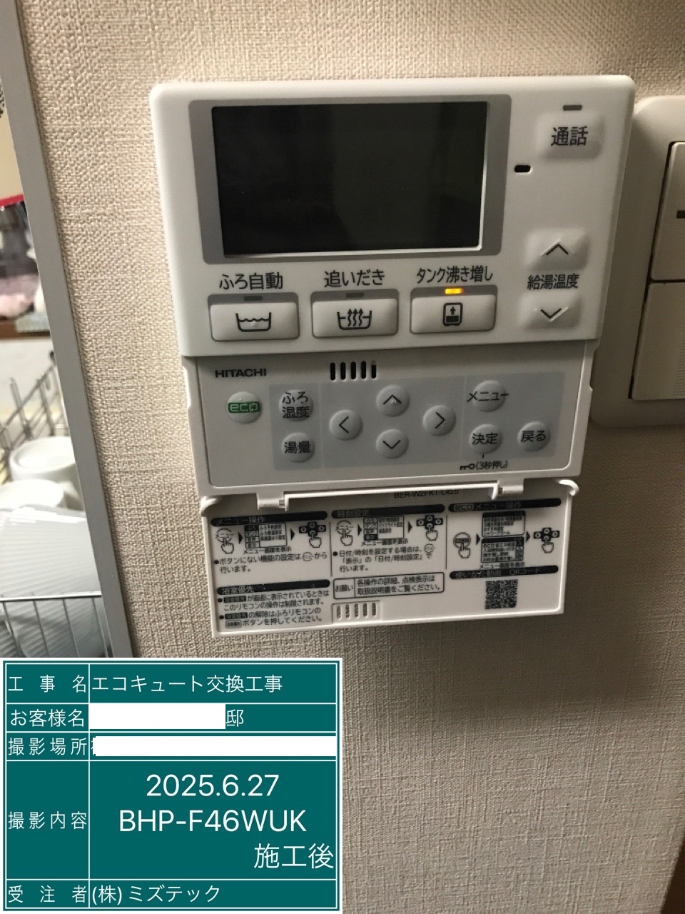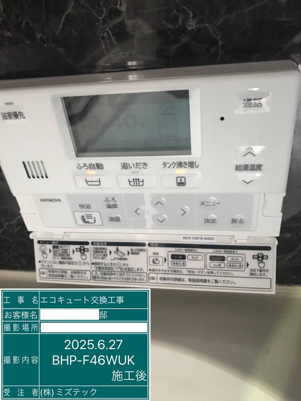 福島県会津若松市エコキュート>日立交換工事施工事例:コロナCHP-371から日立BHP-F46WUKへの交換