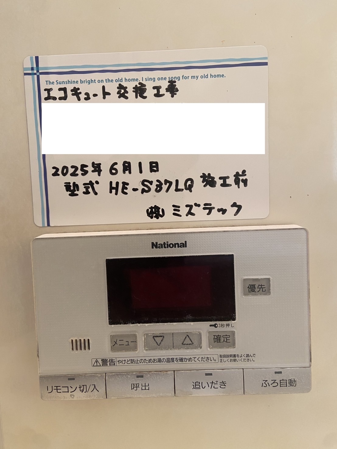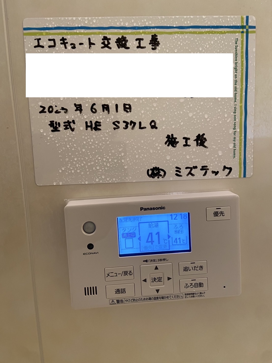 福島県いわき市植田町エコキュート>パナソニック交換工事施工事例:パナソニックHE-K46AQからパナソニックHE-S37LQSへの交換