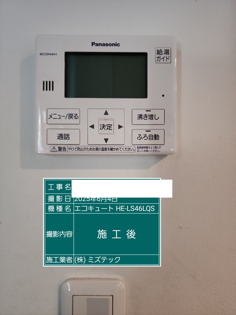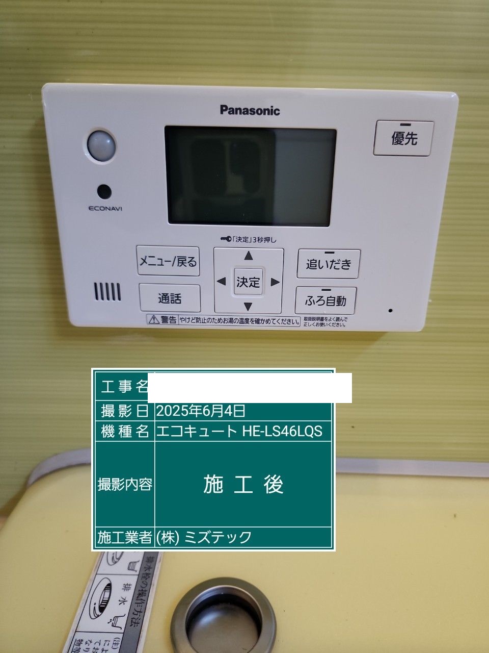 長野県長野市県町エコキュート>パナソニック交換工事施工事例:パナソニックHE-F46BQSからパナソニックHE-LS46LQSへの交換