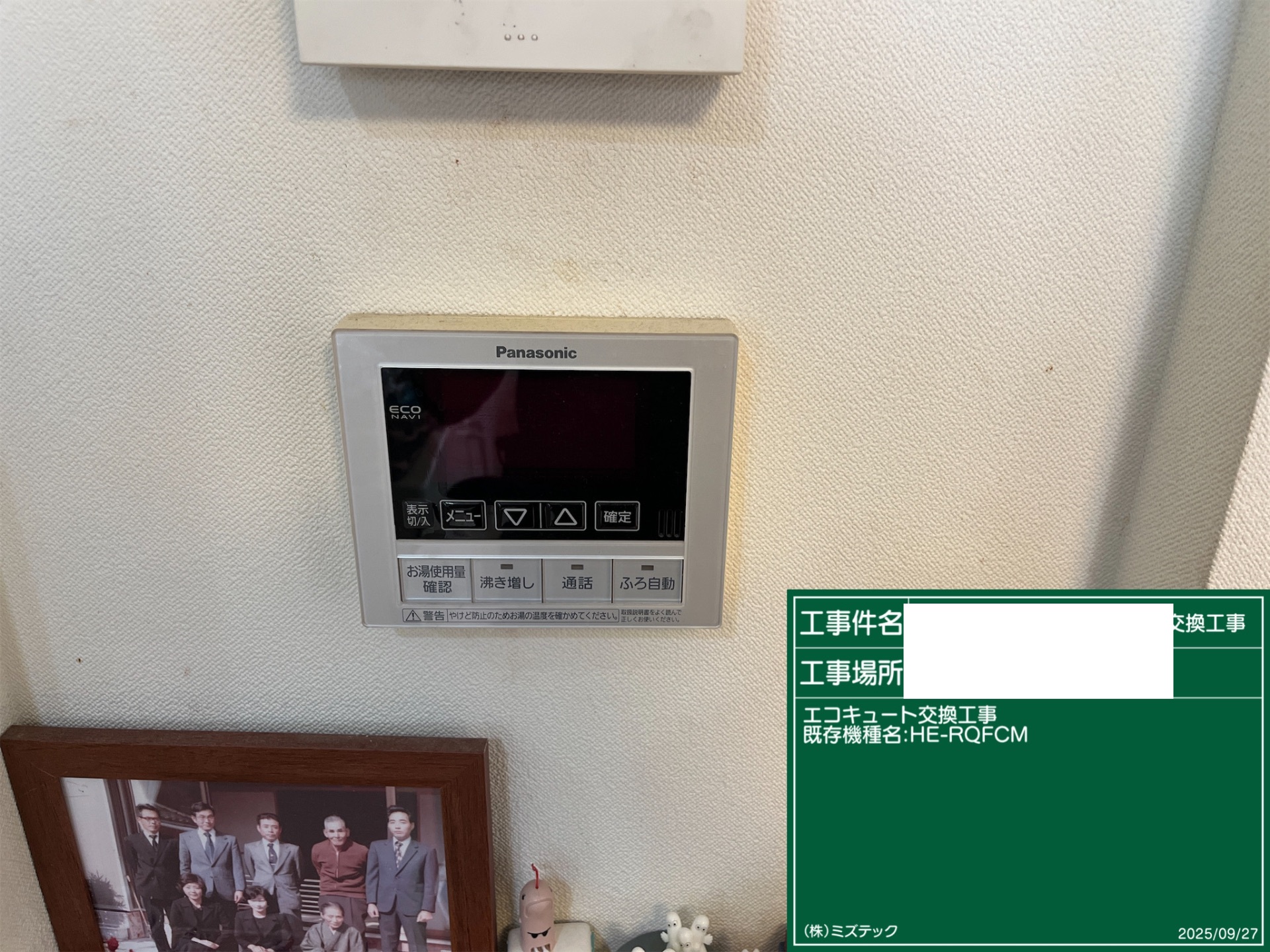 静岡県島田市宮川町エコキュート>ダイキン交換工事施工事例:パナソニックHE-PW45CからダイキンEQA37ZFTVへの交換