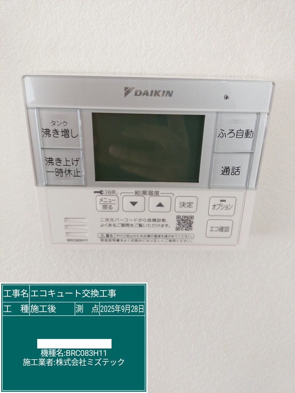 | 内容 | エコキュート>ダイキン交換工事 | ||