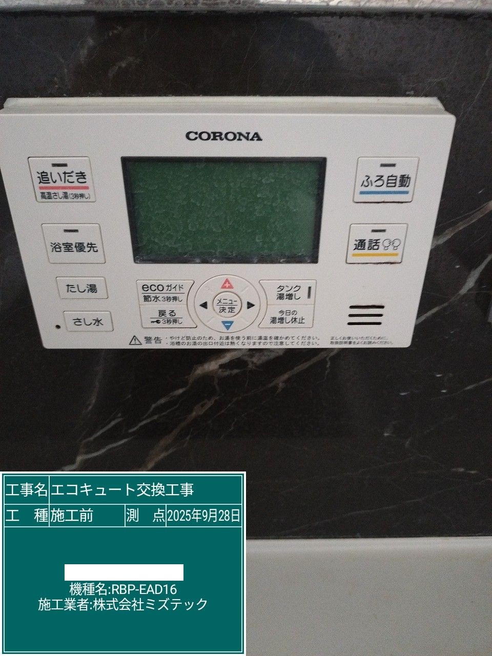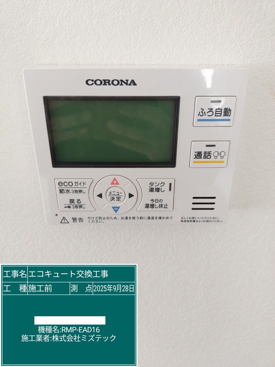三重県いなべ市員弁町エコキュート>ダイキン交換工事施工事例:コロナCTU-E37AX4からダイキンEQX37ZFVへの交換