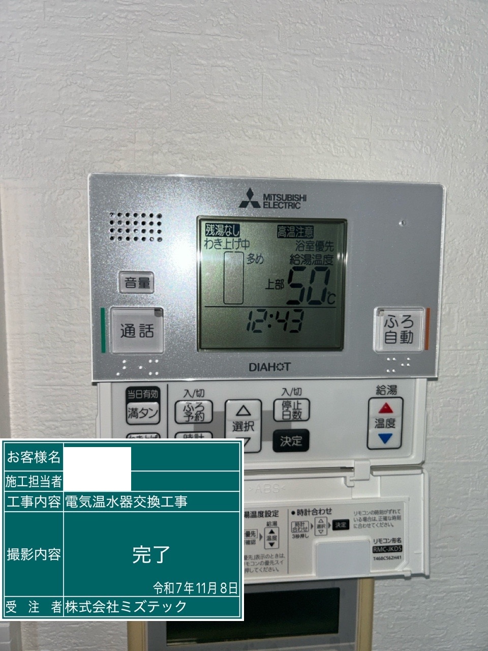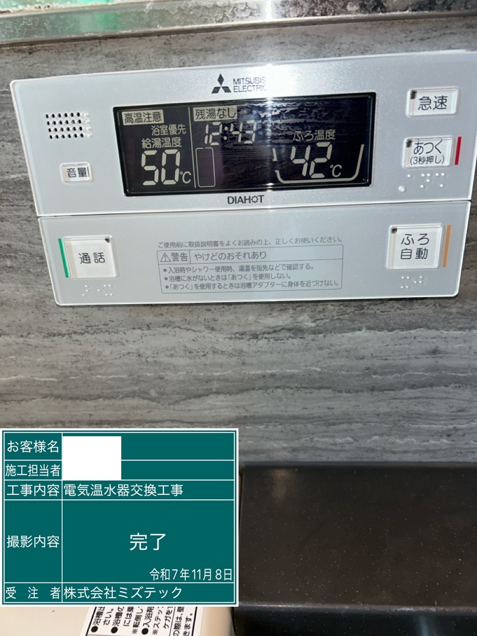 | 内容 | 電気温水器>三菱交換工事 | ||