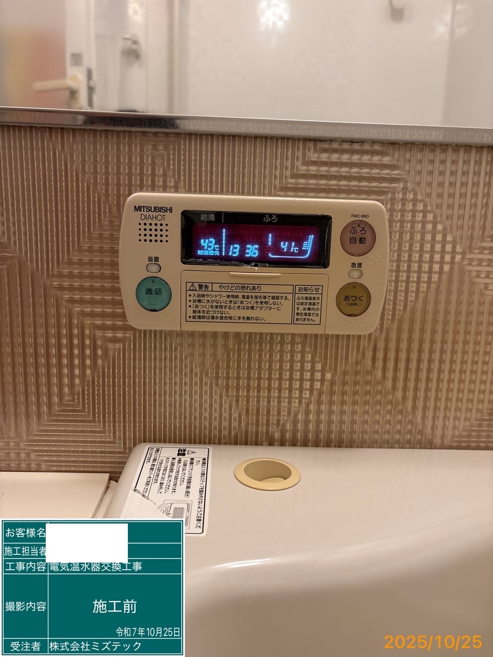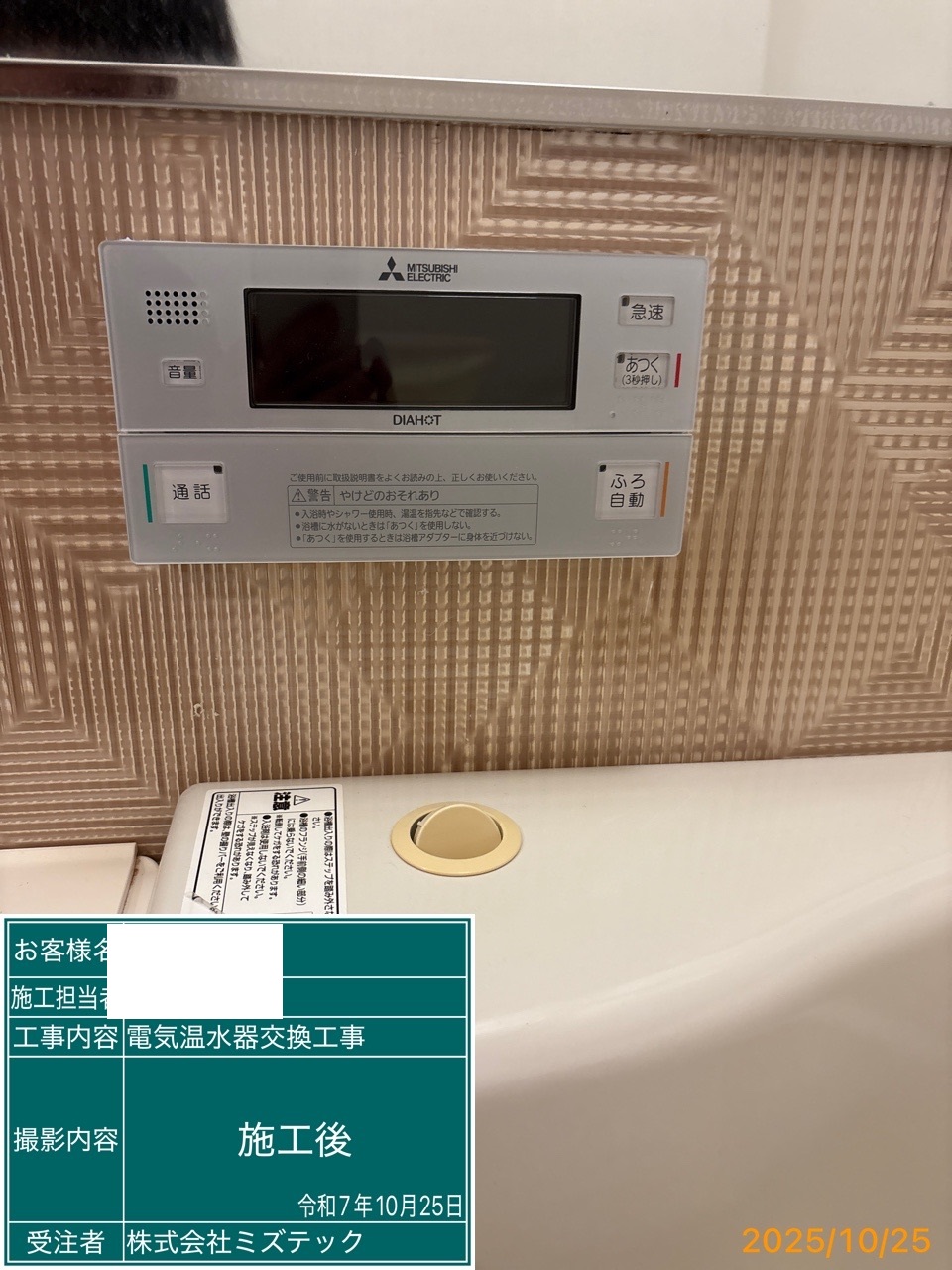 | 内容 | 電気温水器>三菱交換工事 | ||