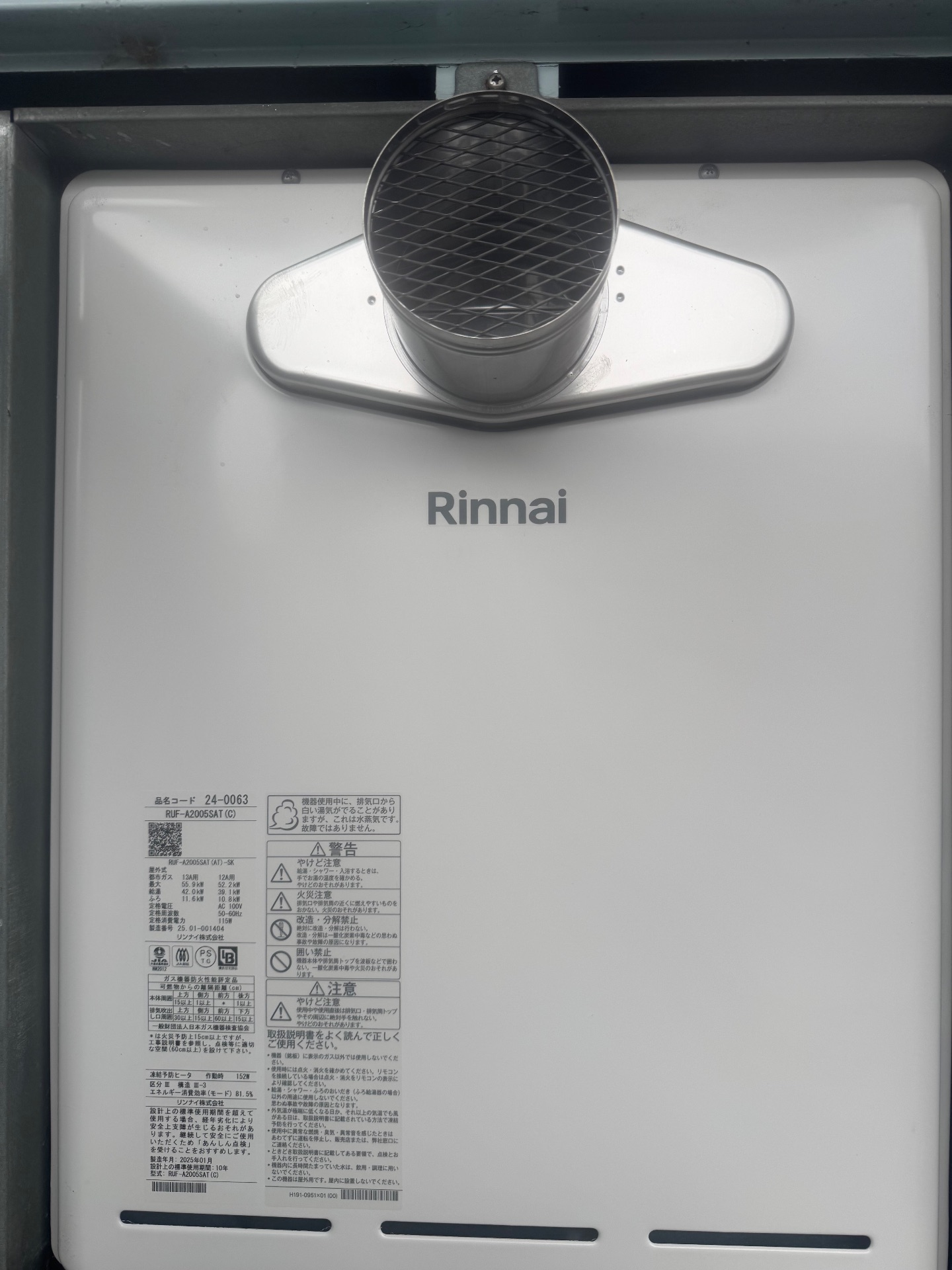 滋賀県大津市ガス給湯器>リンナイ交換工事施工事例:リンナイRUF-V2005SAT-1からリンナイRUF-A2005SAT(C)への交換