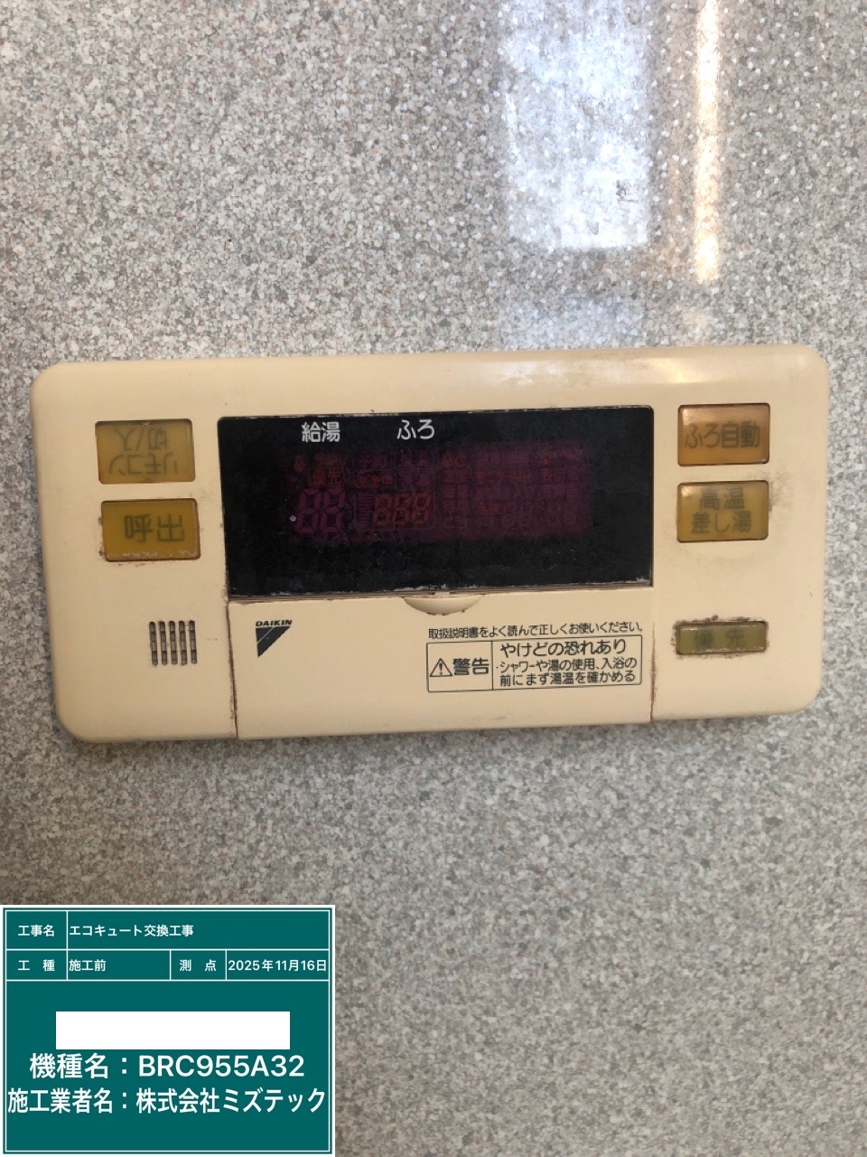 | 内容 | エコキュート>ダイキン交換工事 | ||