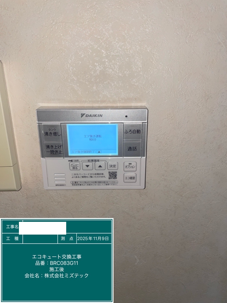 | 内容 | エコキュート>ダイキン交換工事 | ||
