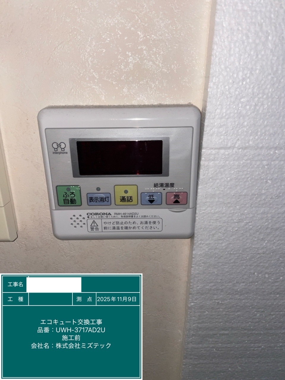 静岡県袋井市エコキュート>ダイキン交換工事施工事例:コロナUWH-3717AD2UからダイキンEQA37YFVへの交換