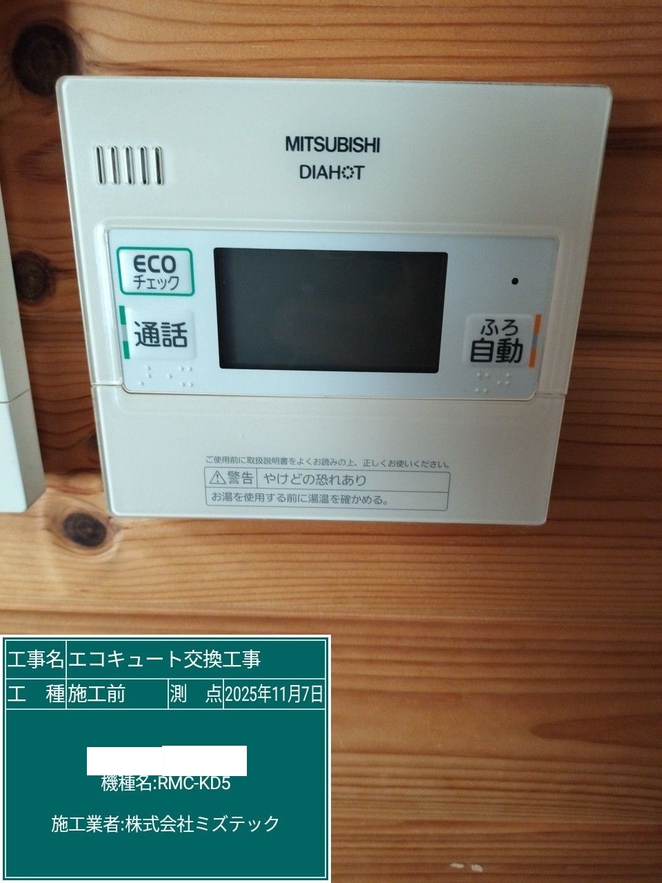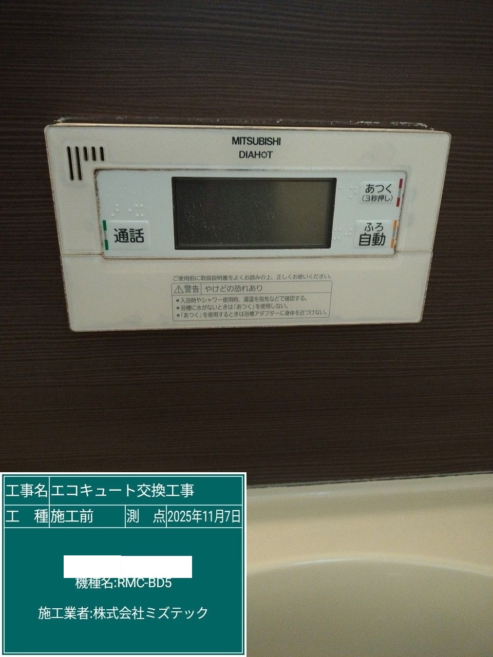 岐阜県岐阜市エコキュート>ダイキン交換工事施工事例:三菱SRT-HPT43WZ5からダイキンEQA37ZFTVへの交換
