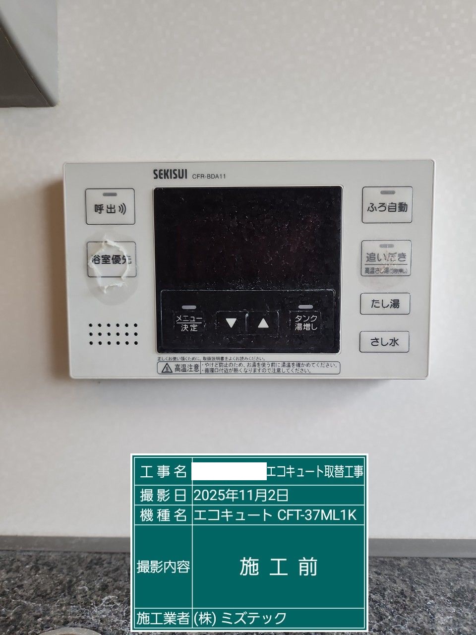 交換前の型式:積水ホームテクノ株式会社 CFT-37ML1K