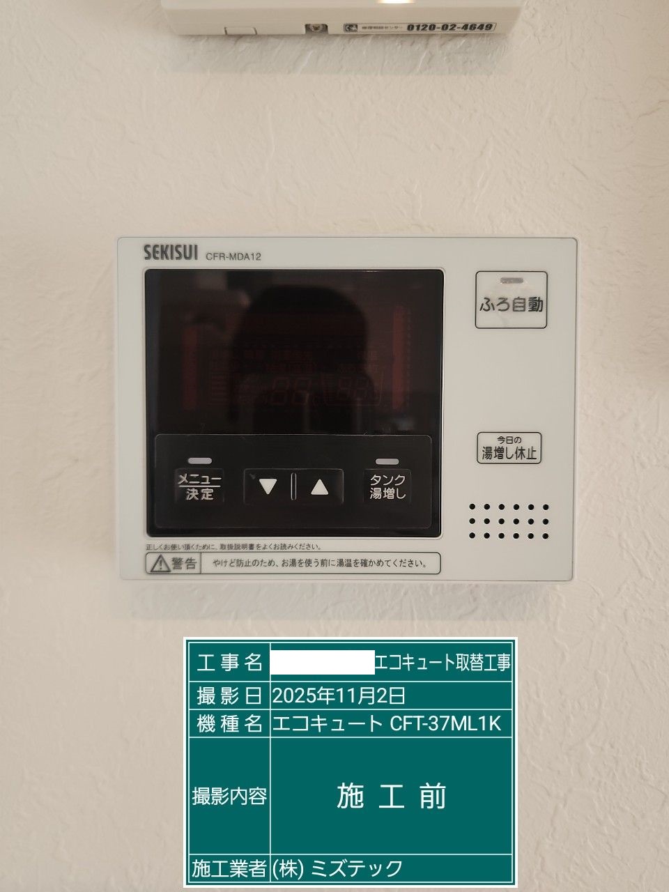 長野県北安曇郡エコキュート>ダイキン交換工事施工事例:積水ホームテクノ株式会社CFT-37ML1KからダイキンEQA37ZFHVへの交換