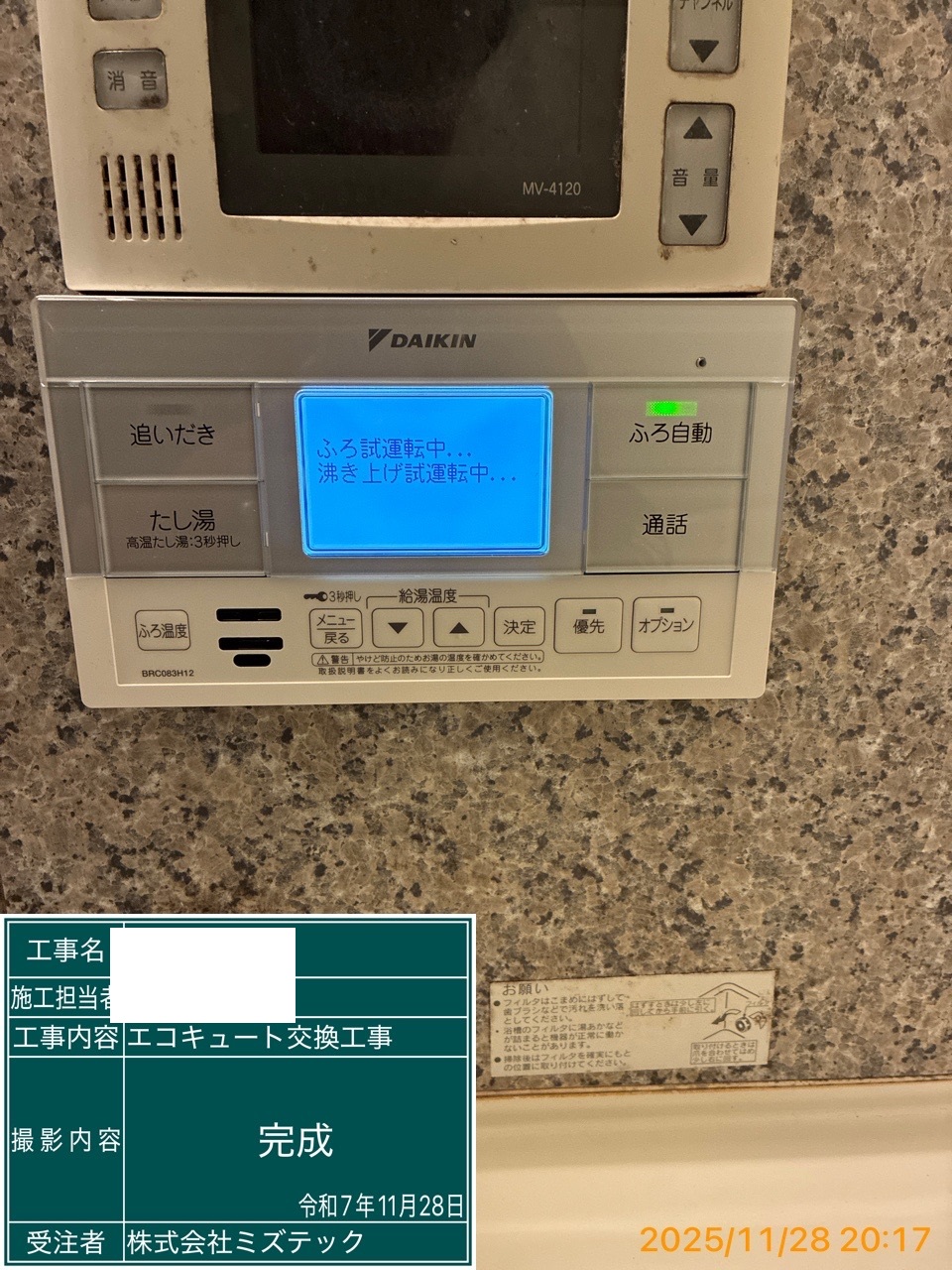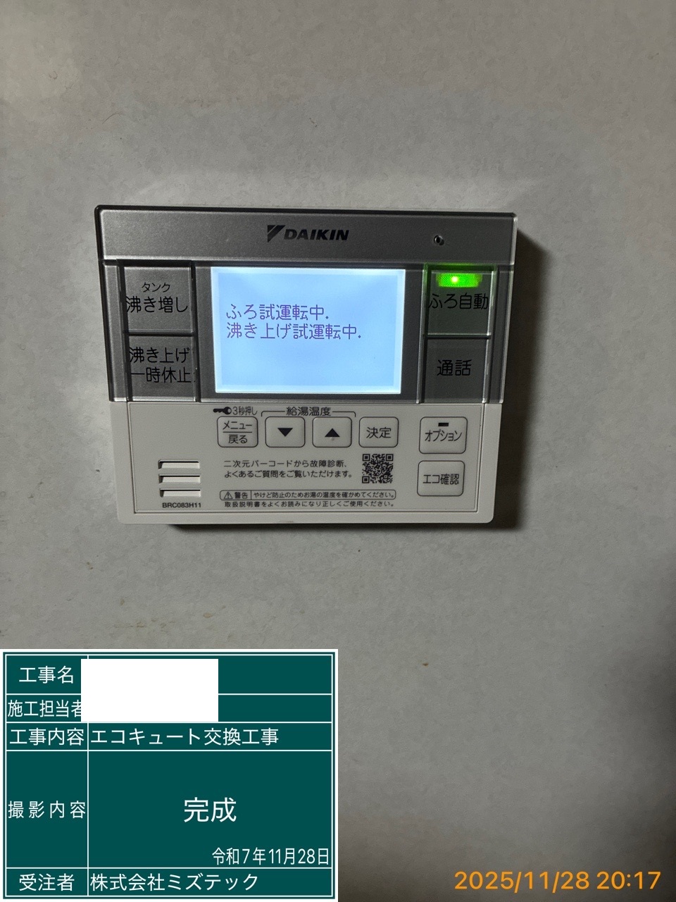 | 内容 | エコキュート>ダイキン交換工事 | ||