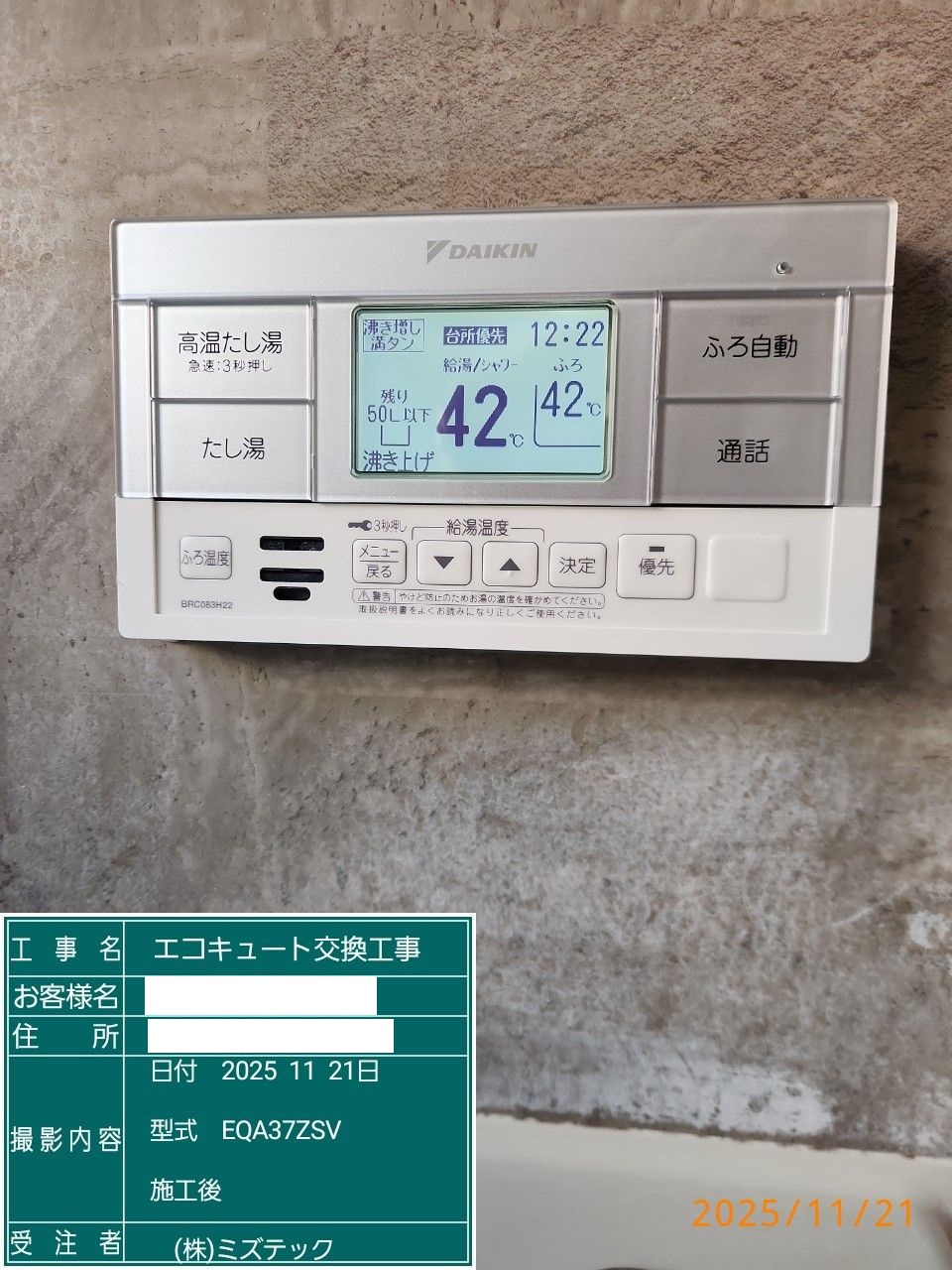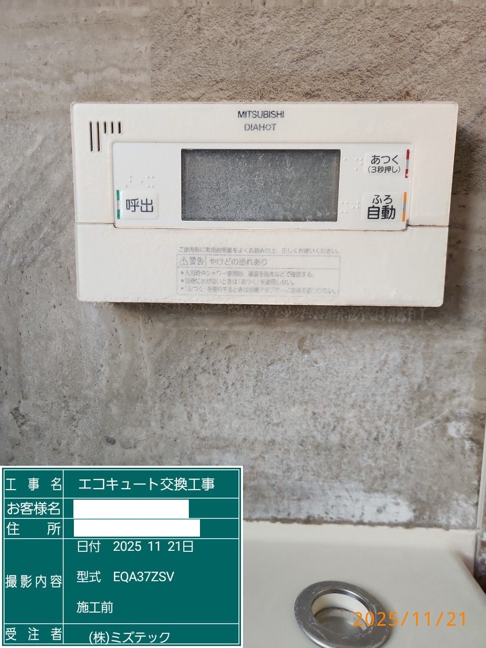 | 内容 | エコキュート>ダイキン交換工事 | ||